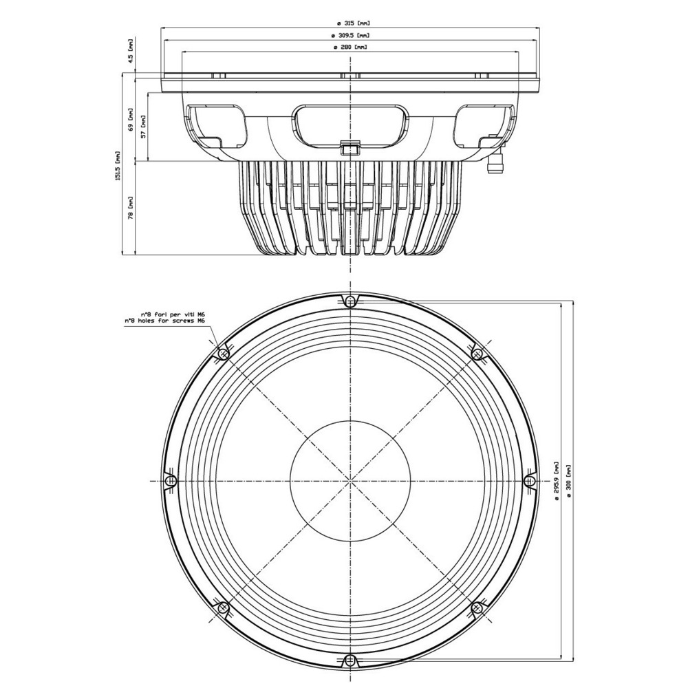 Eighteen Sound 12NLW9300/8 динамик низких частот. Диаметр данной модели 12 дюймов, мощность 800 Вт AES, чувствительность 97 дБ.
