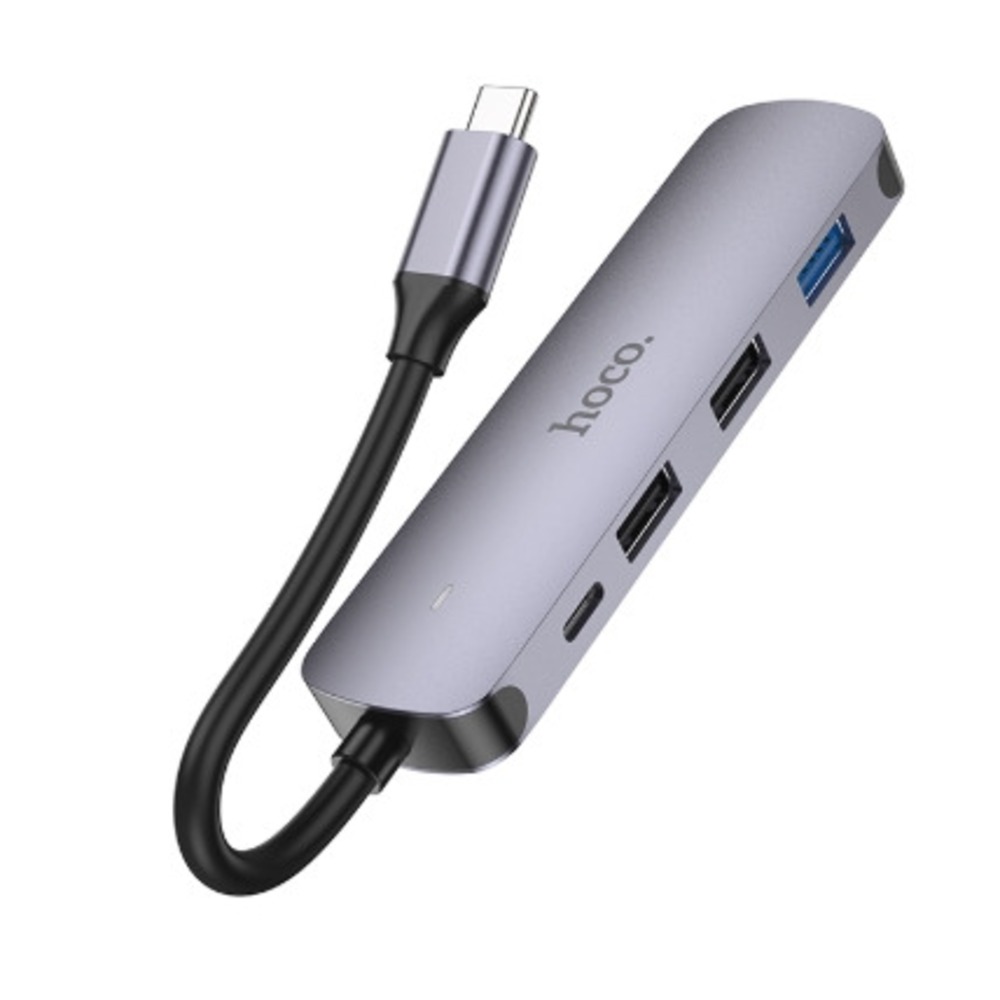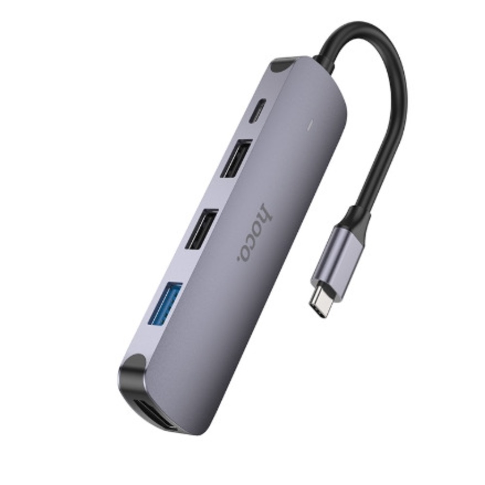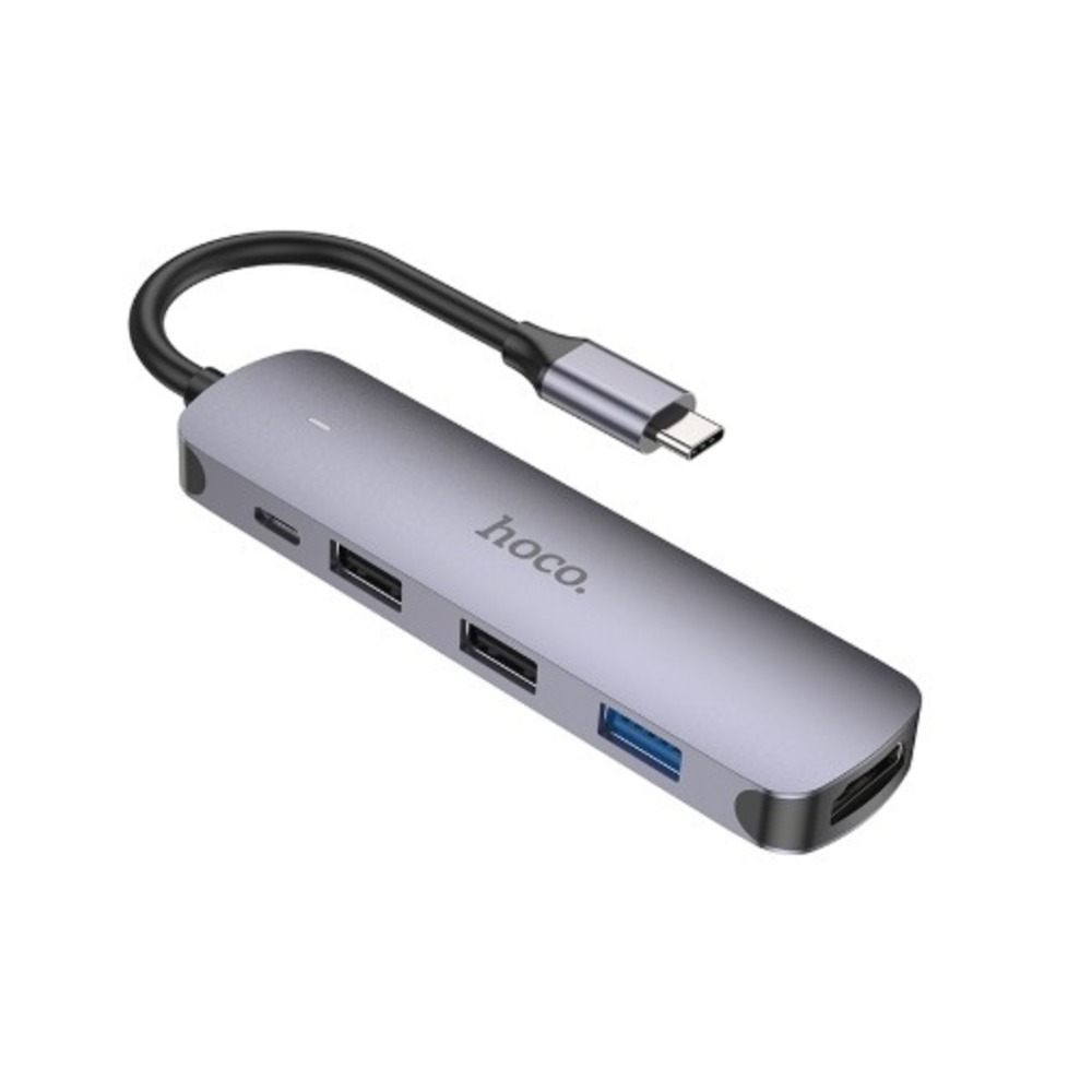 Док-станция Type-C Hoco HB27 5в1: USB3.0, PD100W, 2xUSB2.0, HDMI, кабель 13см, алюминий