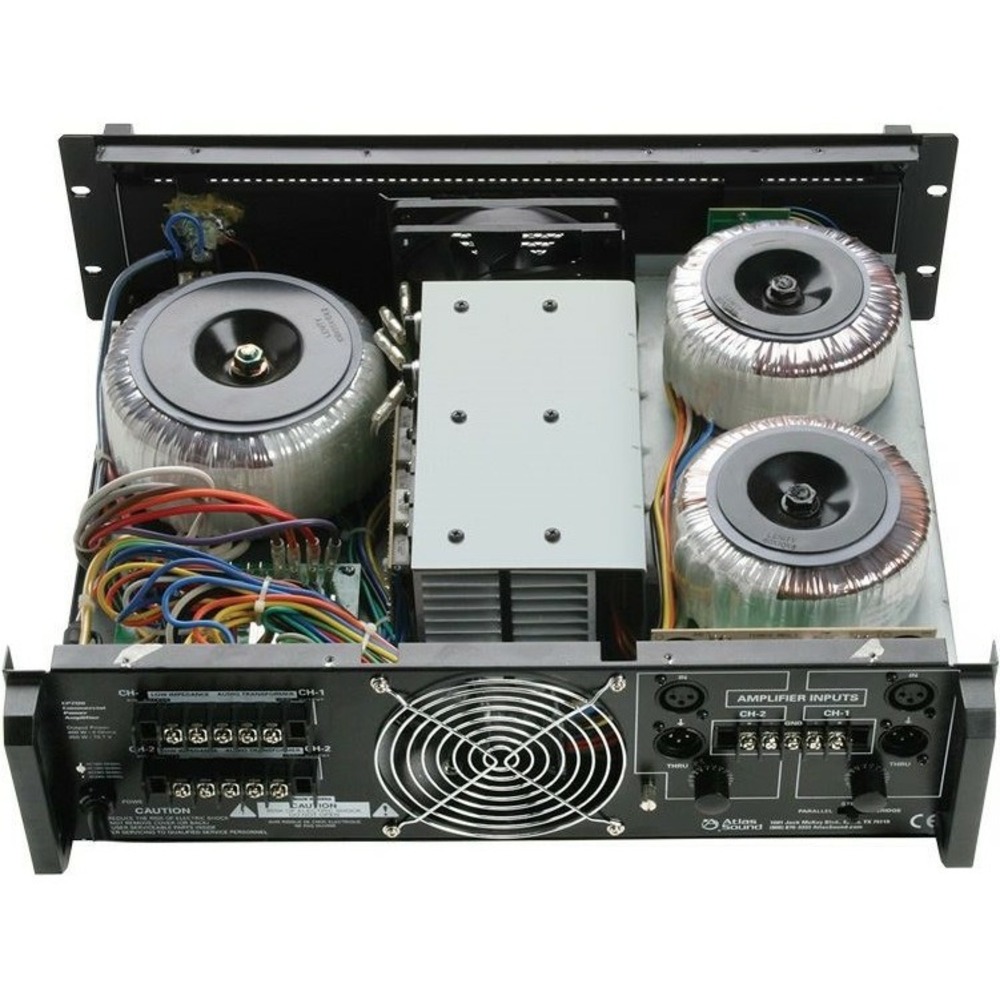 CP700 – профессиональный двухканальный усилитель мощности для балансных и небалансных аудиосигналов. Выходная мощность на канал – 550 Вт/2 Ом, 400 Вт/4 Ом, 240 Вт/8 Ом. Допускает работу в мостовом режиме 1100 Вт/4 Ом, 850 Вт/8 Ом. Оборудован линейным трансформатором для подключения к системам с напряжением линии 25, 70, 100 В. При работе в низкоомных системах имеет частотную характеристику 30 Гц – 50 кГц, а в трансформаторных системах 30 Гц – 16 кГц.