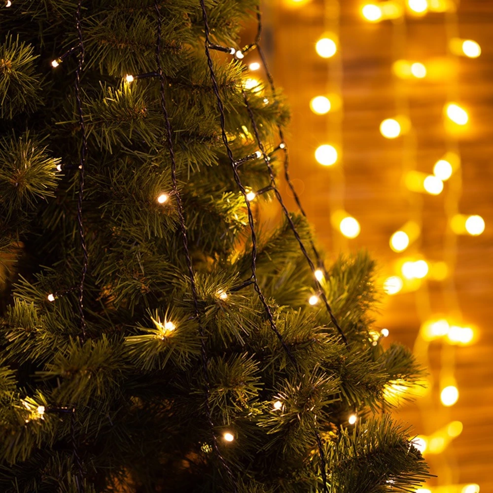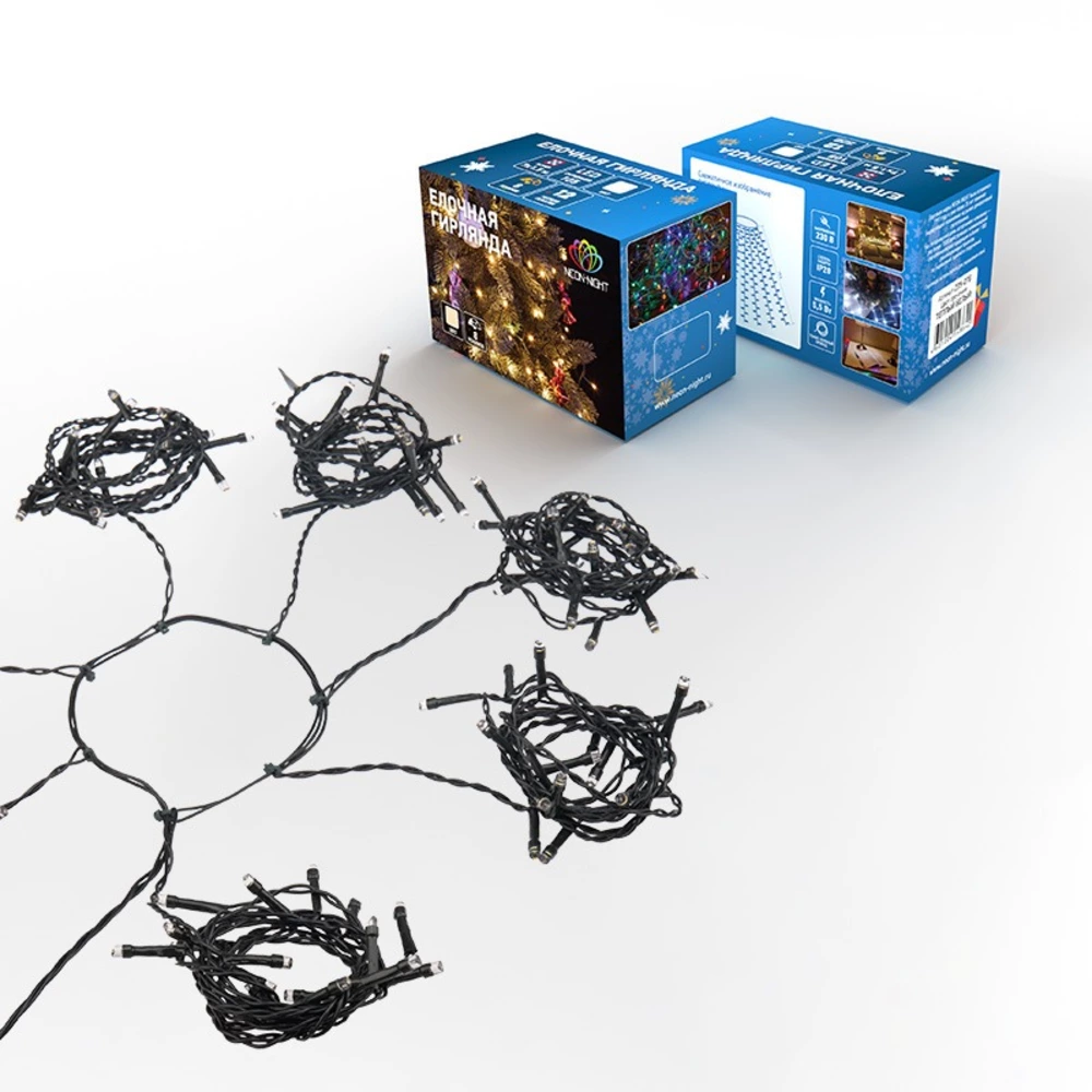 Елочная гирлянда с кольцом и 7 нитями по 1,5 м — готовое решение для быстрого и эффектного декорирования новогодней ели. Конструкция изделия представляет собой кольцо, к которому на равных промежутках крепятся 7 нитей с диодами, излучающими белый свет теплого оттенка — всего 105 светодиодов. Провод помещен в изоляционную оболочку из гибкого ПВХ темно-зеленого цвета и отлично маскируется в кроне классических елок. Гирлянда предназначена для домашнего использования. Чтобы нарядить ель, достаточно надеть кольцо на вершину и распределить нити. Для управления подсветкой предусмотрен контроллер с 8 режимами. Длина питающего шнура — 3 метра.