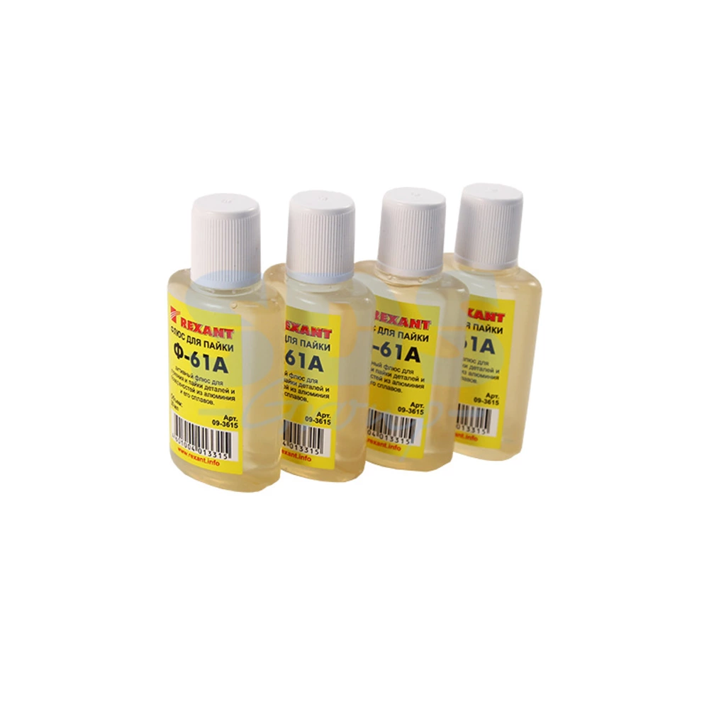 Флюс для пайки Ф-61А (пайка алюминия) 30 мл REXANT предназначен для удаления оксидов с поверхности под пайку, улучшения растекания жидкого припоя при пайке алюминия и алюминиевых сплавов. Изготовлен на основе фторборатов, что значительно выделяет его из всей группы соединений для пайки.