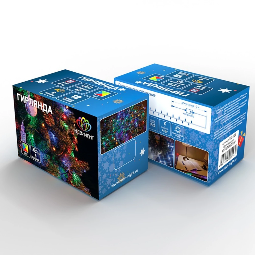Гирлянда «Кластер» длиной 3 метра со степенью защиты IP20 прекрасно подходит для создания праздничного интерьерного декора. Идеальный вариант использования — в качестве украшения новогодней елки. Шнур в изоляции из темно-зеленого ПВХ сливается с кроной и оставляет на виду только россыпь ярко мерцающих разноцветных огней. 288 диодов экономно расходуют электроэнергию и практически не выделяют тепло. Длина кабеля для подключения в розетку 3 метра. Контроллер с 8 режимами позволяет менять опции одним нажатием кнопки. Чтобы получить длинное украшение, можно соединить до 20 гирлянд.