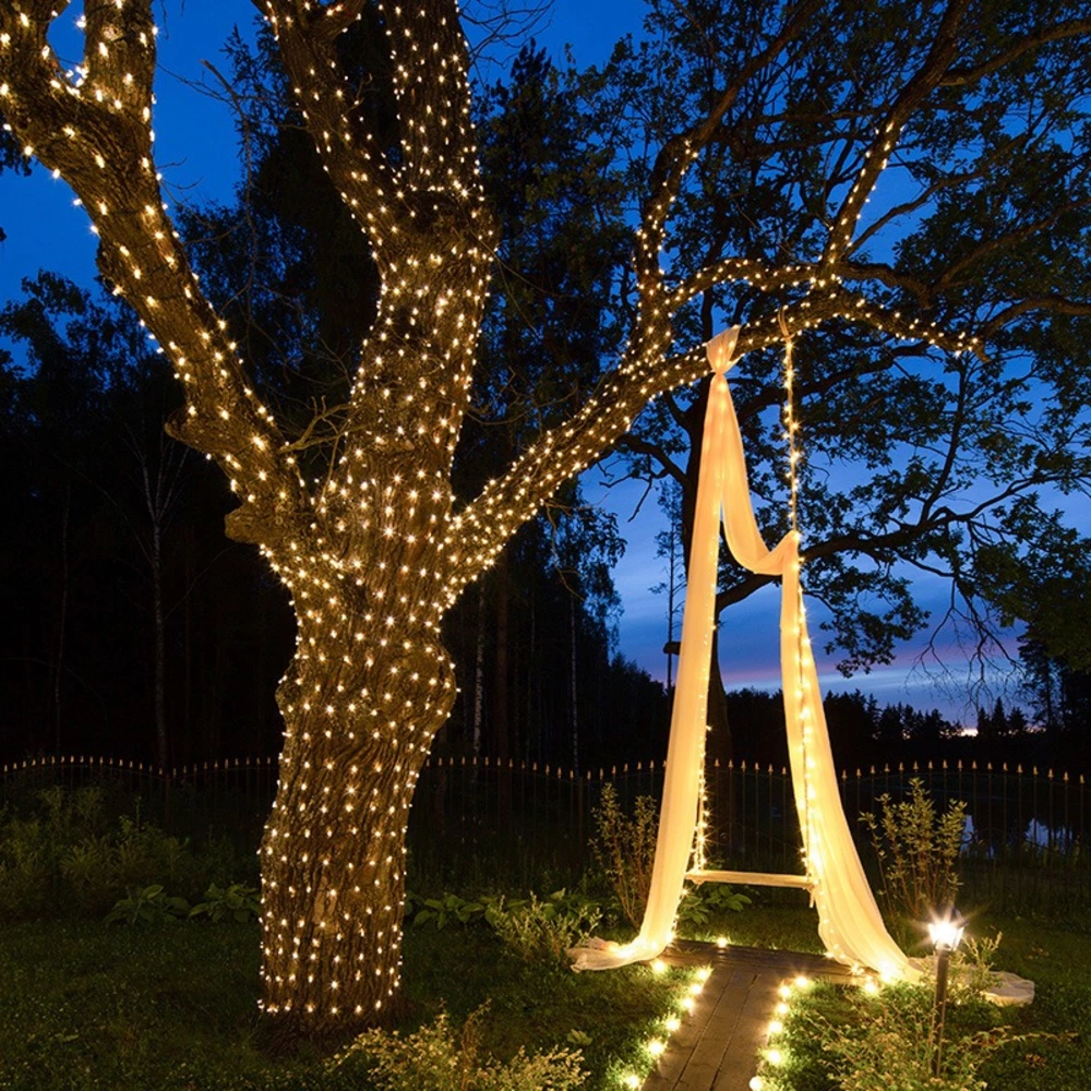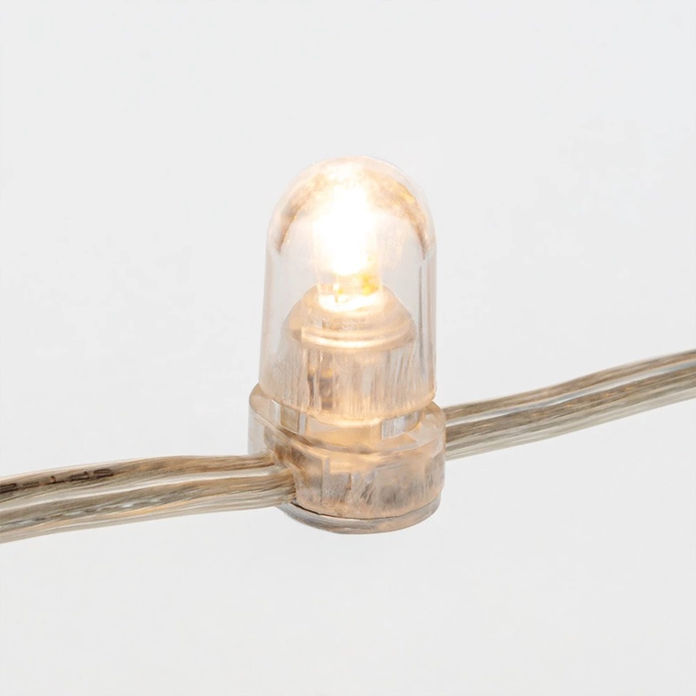 Светодиодная гирлянда «Клип-лайт» представляет собой провод, на котором последовательно расположены светодиоды. Также гирлянды могут быть изготовлены из малогабаритных лампочек накаливания. источники света могут располагаться на расстоянии 7,5, 15, 30 см друг от друга. Данная гирлянда «Клип-лайт» разработана для оформления деревьев и широко применяется в ландшафтном оформлении парков, аллей, садов и др., поэтому она хорошо переносит даже достаточно серьезные перепады температур. В качестве преимуществ гирлянды можно отметить следующие: более толстый и крепкий провод, невысокое напряжение, хорошая влагозащищенность, высокое разнообразие цветовых решений. Также гирлянда не выделяет тепла, поэтому совершенно безопасна не только для деревьев и кустарников, но и для людей! Данная гирлянда поставляется в бухтах по 100 м на прозрачном ПВХ, представлена в теплом белом цвете свечения светодиодов.