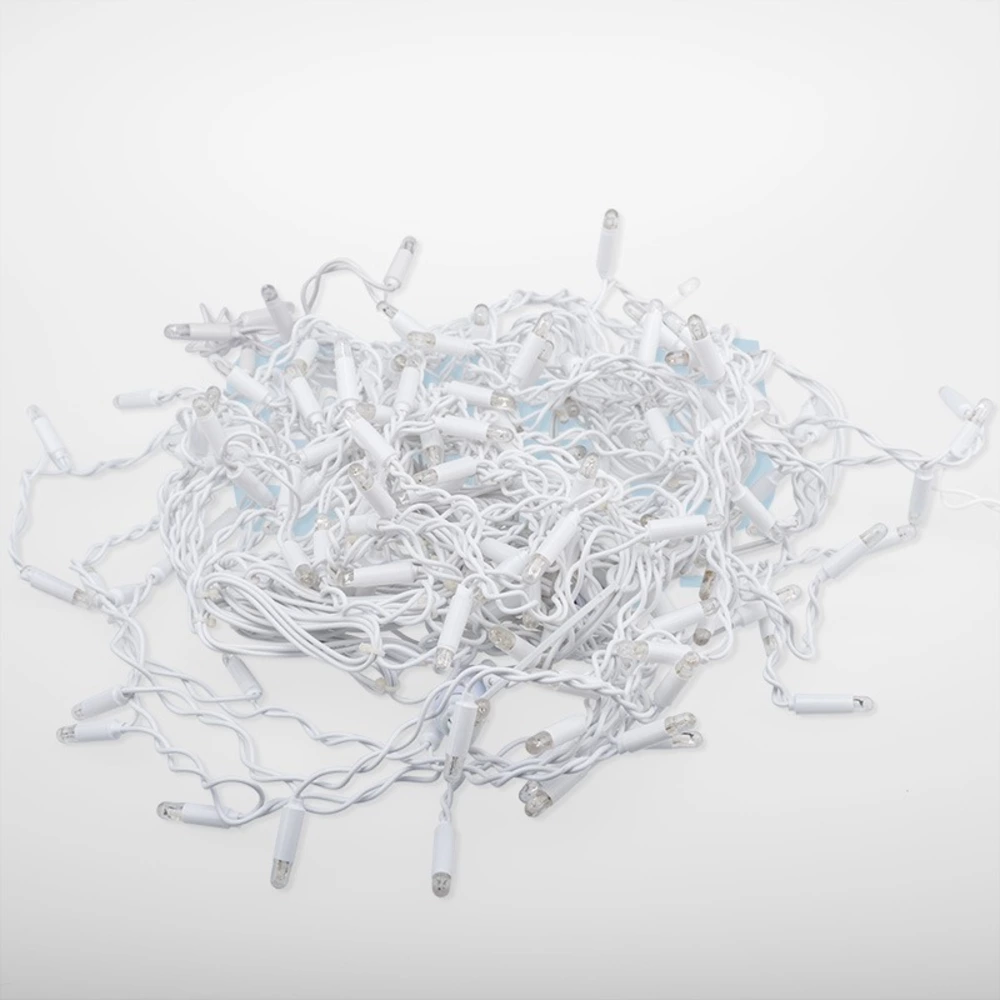 Гирлянда "Бахрома" ("Айсикл") представляет собой гибкий горизонтальный шнур-шину, к которому через определенные промежутки крепятся вертикальные нити разной длины со светодиодами. Она имитирует сосульки и может послужить эффектным и оригинальным решением при декорировании карнизов домов, арок, фасадов зданий, витрин магазинов, а также стать элементов декора внутренних интерьеров помещений. Благодаря использованюя в гирлянде светодиодов, ее отличительной особенностью является превосходная яркость и низкое энергопотрбление по сравнению с лампами накаливания. При длине 4,8 метра гибкая направляющая имеет 48 вертикальных нити от 20 до 60 см. Данная гирлянда имеет Теплый белый цвет свечения. Ее особенностью является наличие мерцающих светодиодов Белого цвета, которые привлекают внимание и значительно преображают украшенную поверхность (мерцает каждый пятый светодиод). Гирлянда предназначена для использования как внутри помещения, так и снаружи.