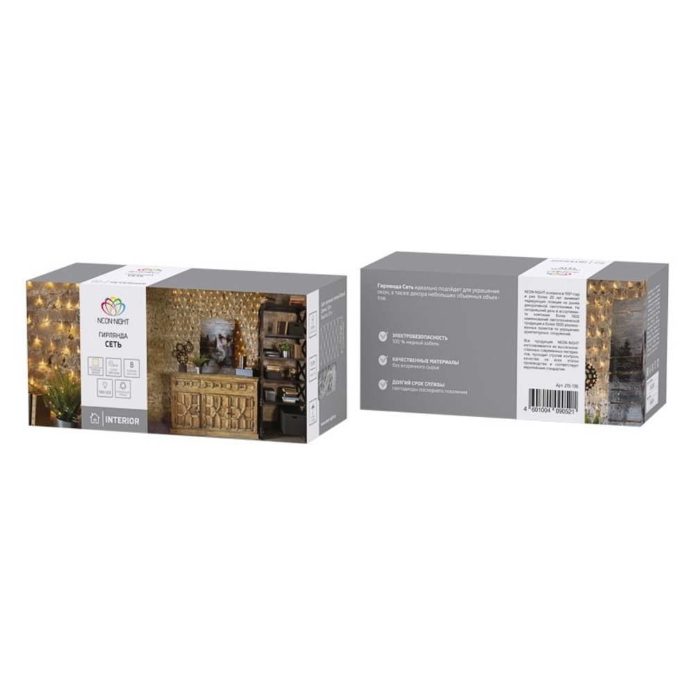 Гирлянда "Сеть" Neon-Night 215-136 1,8х1,5м, прозрачный ПВХ, 180 LED ТЕПЛЫЙ БЕЛЫЙ