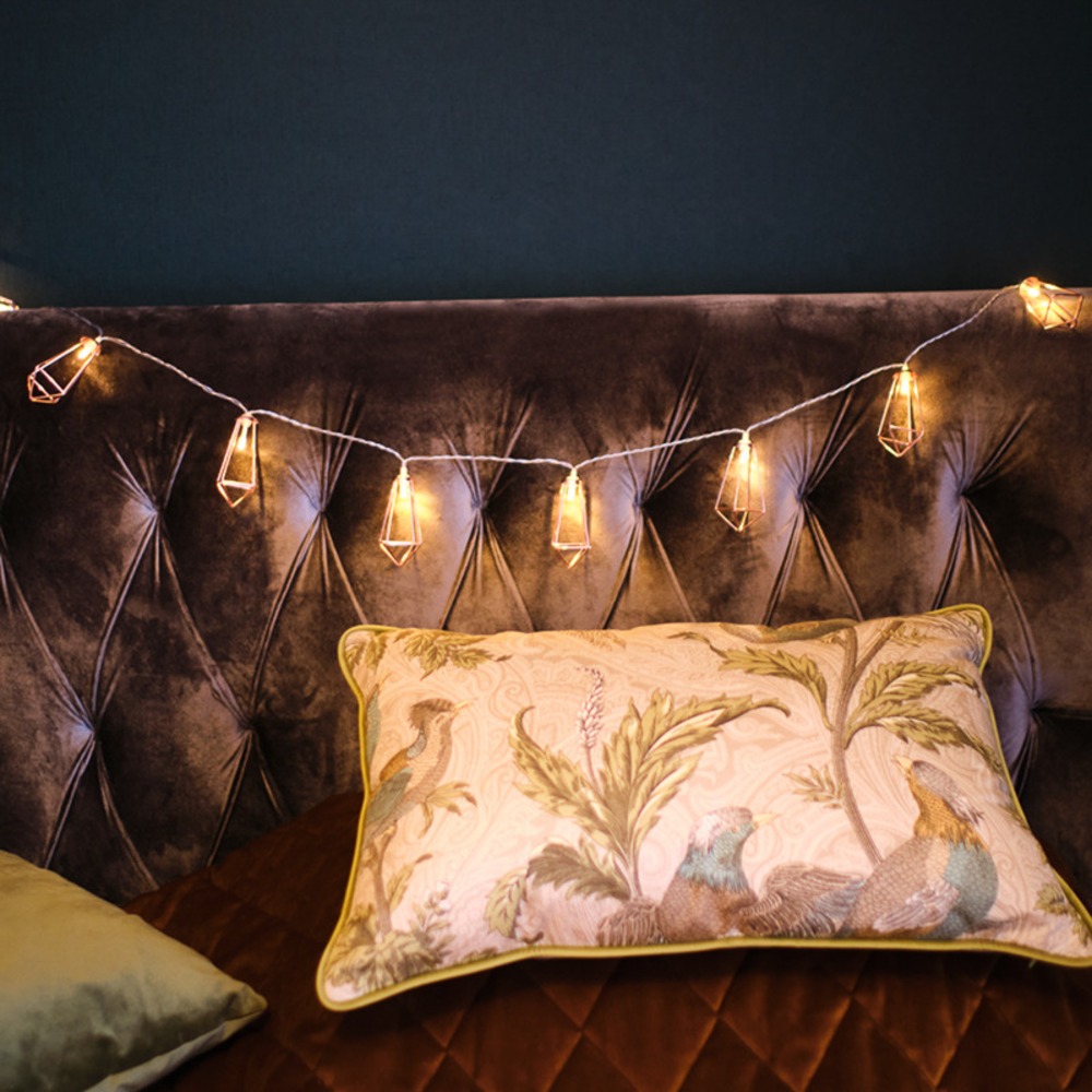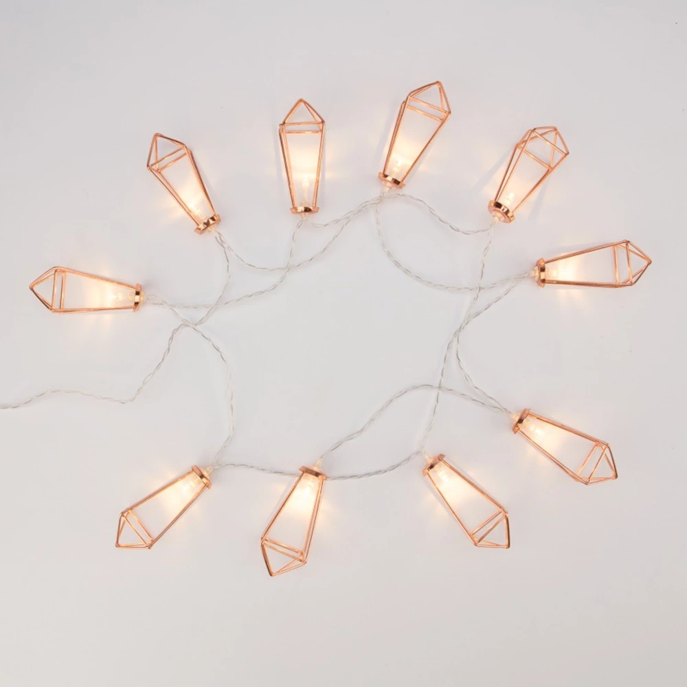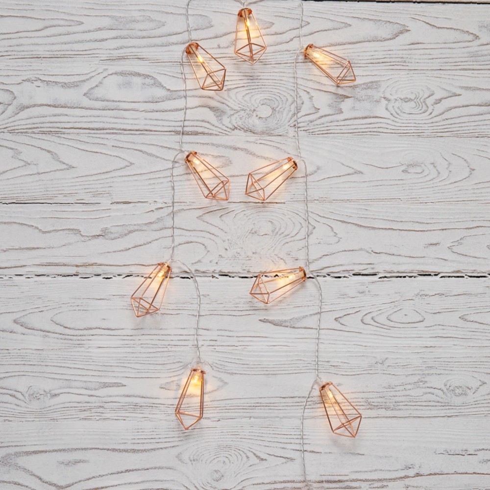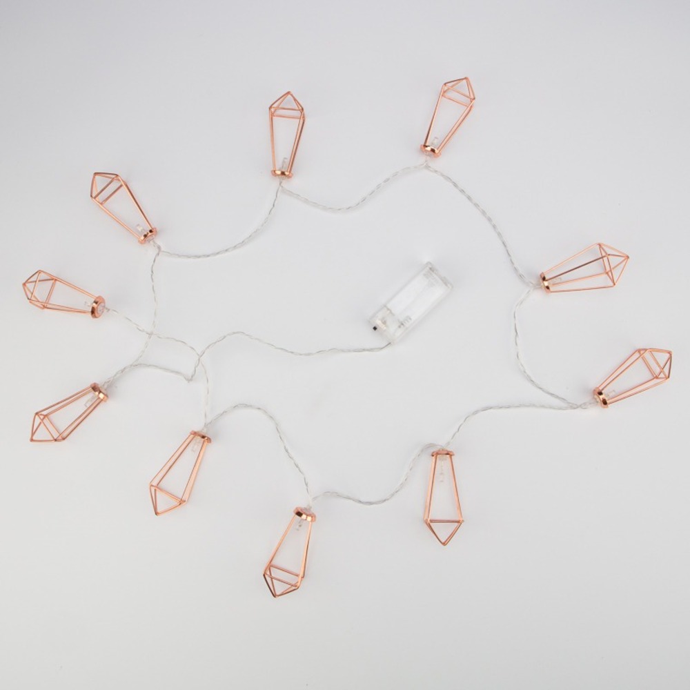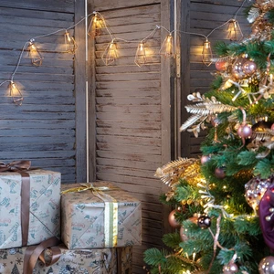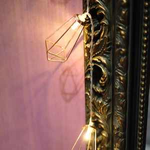 Светодиодная гирлянда «Кристаллы» длиной 1,5 метра — оригинальный, безопасный световой декор, созданный, чтобы притягивать внимание к яркому уникальному стилю вашего дома. Насадки в виде бронзовых кристаллов расположены на проводе, защищенном изоляционным слоем из прозрачного ПВХ. 10 диодов излучают теплый белый свет и мягко подсвечивают декоративные элементы. Гирлянда не нуждается в розетке: питается от собственного блока с 2 батарейками типа АА, что делает изделие мобильным и абсолютно безопасным даже для маленьких детей.