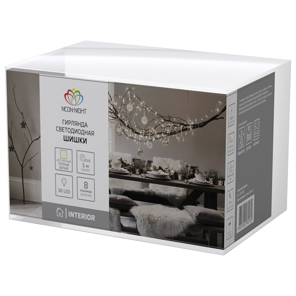 Гирлянда светодиодная «Шишки» Neon-Night 303-069 5 м, 30 LED, прозрачный ПВХ с контроллером, цвет свечения теплый белый