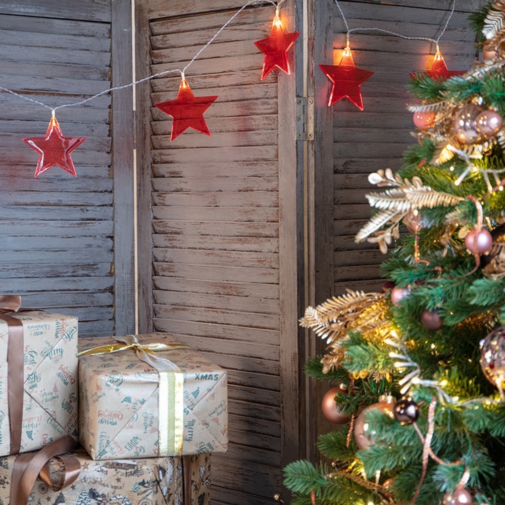 Гирлянда светодиодная «Звездопад» Neon-Night 304-002 красная 10 LED, 2,25 м, теплый белый свет, 2 х АА (батарейки не в комплекте)