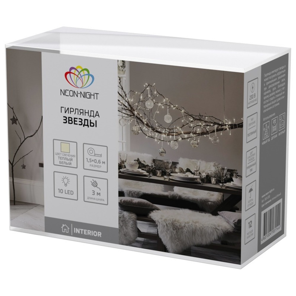 Гирлянда светодиодная «Звезды» Neon-Night 303-030 1,5х0,6 м, прозрачный провод, теплый белый свет свечения