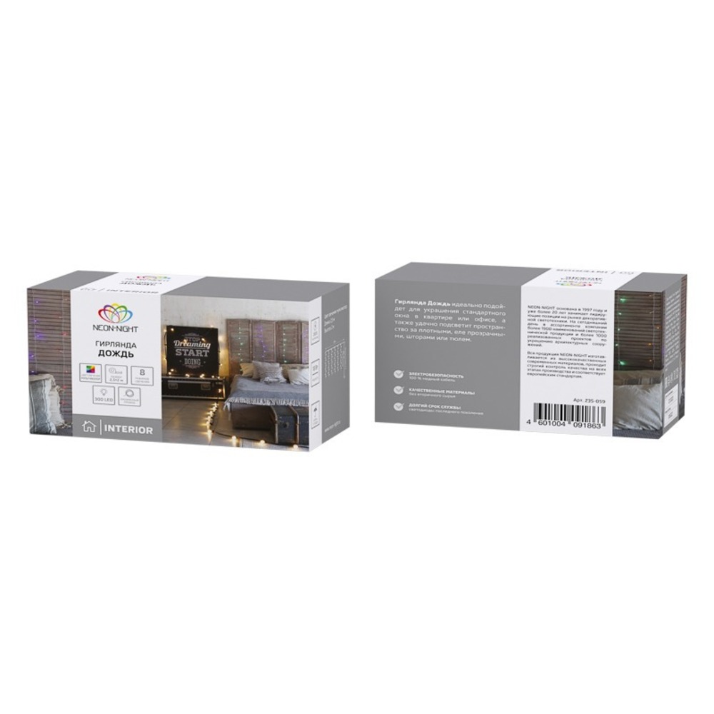 Гирлянда "Светодиодный Дождь" Neon-Night 235-059 2,5x2 м, свечение с динамикой, прозрачный провод, 230 В, диоды Мультиколор