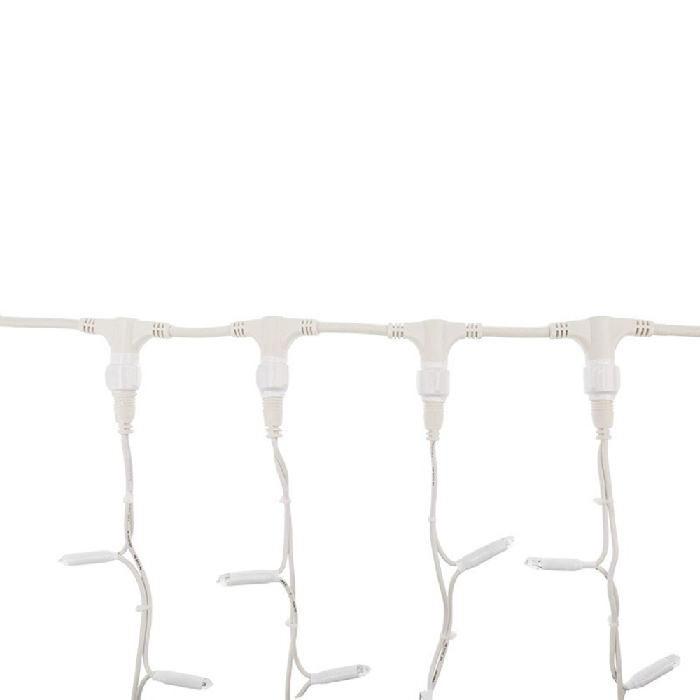 Гирлянда "Светодиодный Дождь" представляет собой гибкий горизонтальный шнур, к которому через определенные промежутки крепятся вертикальные нити со светодиодными лампами, которые отличаются от «Бахромы» тем, что имеют одинаковую, достаточно значительную длину, часто превышающую протяженность шины. На концах каждой шины есть разъем и штепсель, которые предназначены для последовательного соединения нескольких световых дождей в большой занавес ПЛЕЙ-ЛАЙТ. Используя занавес, можно не только создавать красивые световые занавесы или оформлять различные плоскости, например, фасады домов, окна и т.д., но и украшать объемные объекты. Гирлянду, работающую в непрерывном свечении, называют фиксинг, а использующую режим светодинамики – чейзинг. Светодинамические эффекты становятся доступными только при подключении гирлянды к сети через специальный контроллер. Сегодня в гирляндах источником света служат светодиоды, которые пришли на смену применявшимся ранее лампам накаливания. С полупроводниковыми источниками гирлянда стала более надежной, потребляет меньше энергии, обрела более насыщенное сияние. Данная гирлянда имеет зеленый цвет свечения светодиодов.
