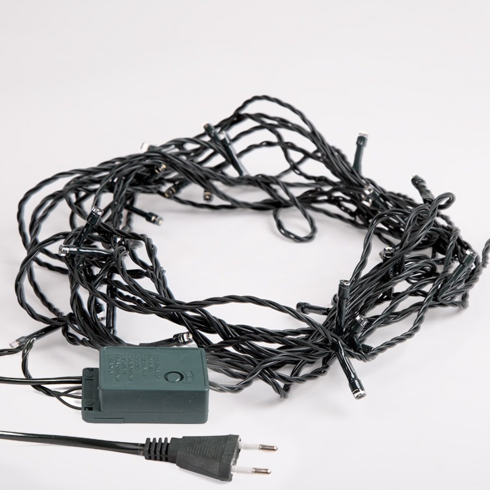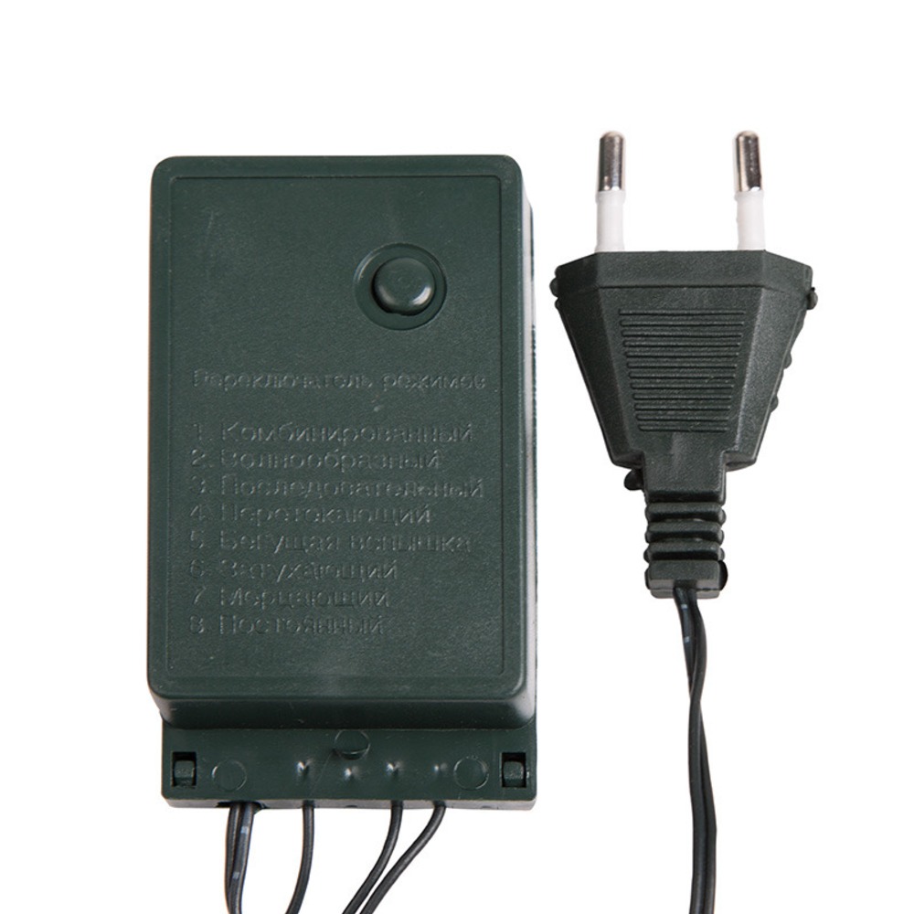Гирлянда «Твинкл» длиной 6 метров с защитой IP20 предназначена для украшения новогодней ели и интерьерных предметов в отапливаемых помещениях с низкой влажностью. 40 разноцветных светодиодов равномерно распределены по кабелю в темно-зеленой ПВХ-оболочке. Контроллер с 8 режимами позволяет менять динамику одним нажатием кнопки и создавать веселое праздничное настроение. Гирлянда работает от электрической сети 230 В через обычную розетку, для подключения предусмотрен трехметровый питающий шнур.