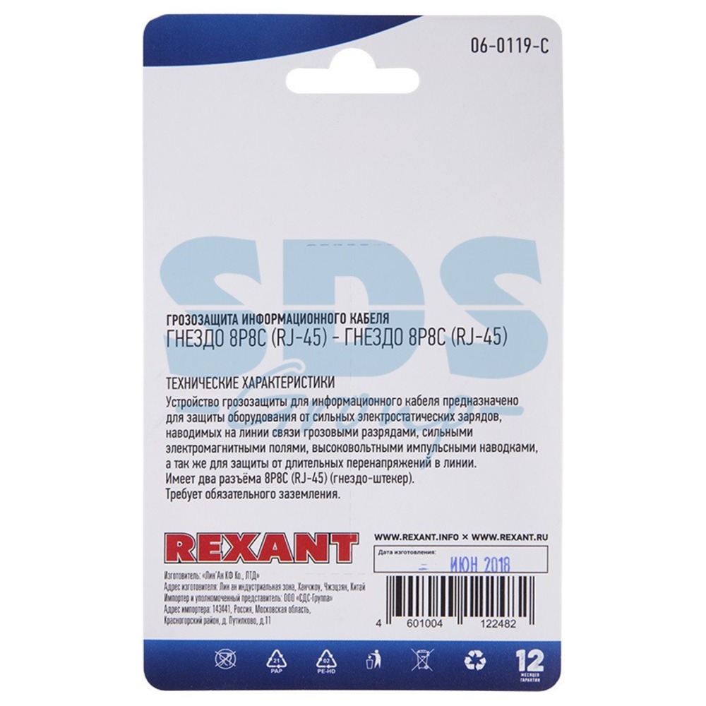 Грозозащита информационного кабеля Rexant 06-0119-C Грозозащита информационного кабеля (1 штука)