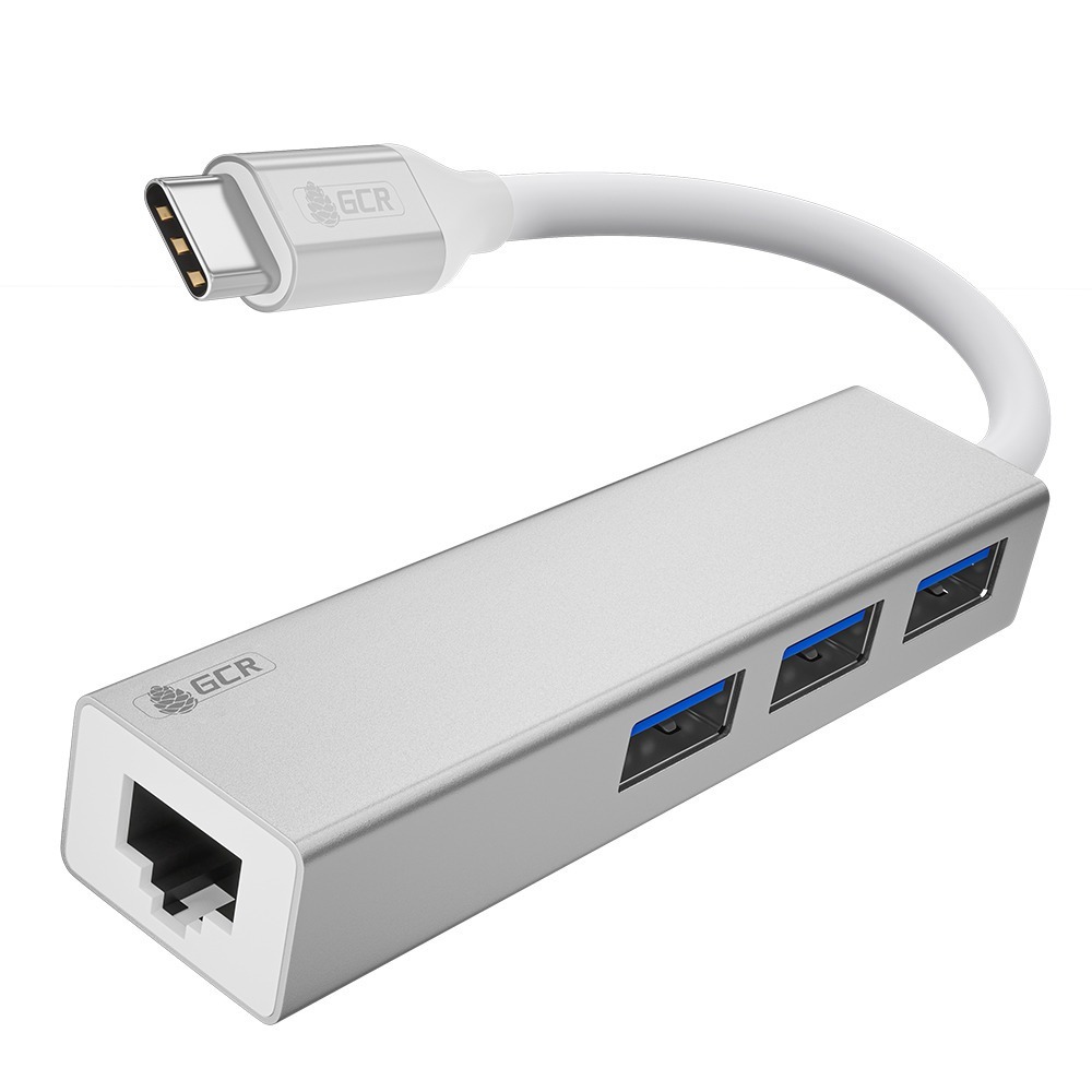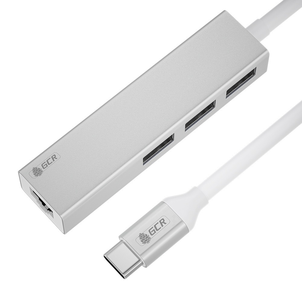 HUB TypeC 4в1 разветвитель на 3 порта USB 3.0 + сетевой адаптер Gigabit Ethernet RJ-45, серебристый, алюминиевый корпус