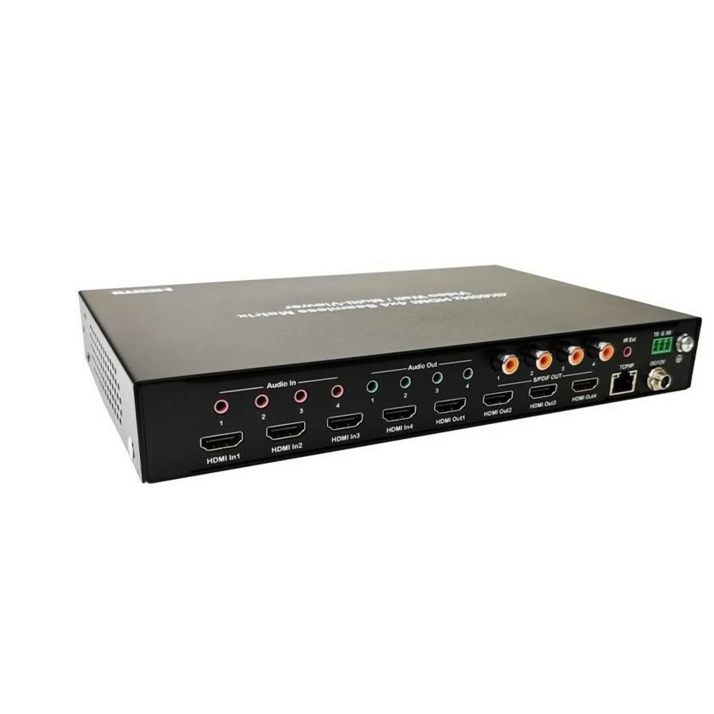 - Раздавать аудио- видео- контент в разрешении 4K от 4 источников на 4 экрана (HDMI матрица)