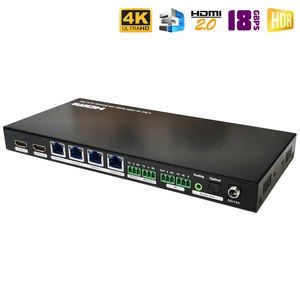 Входные порты приемника: =1x Ethernet, 1x 3.5 mm Jack ИК управление, 1x Phoenix RS-232 Выходные порты приемника 1x HDMI, 1x SPDIF, 1x 3.5 mm AudioJack, 1x 3.5 mm Jack ИК управление