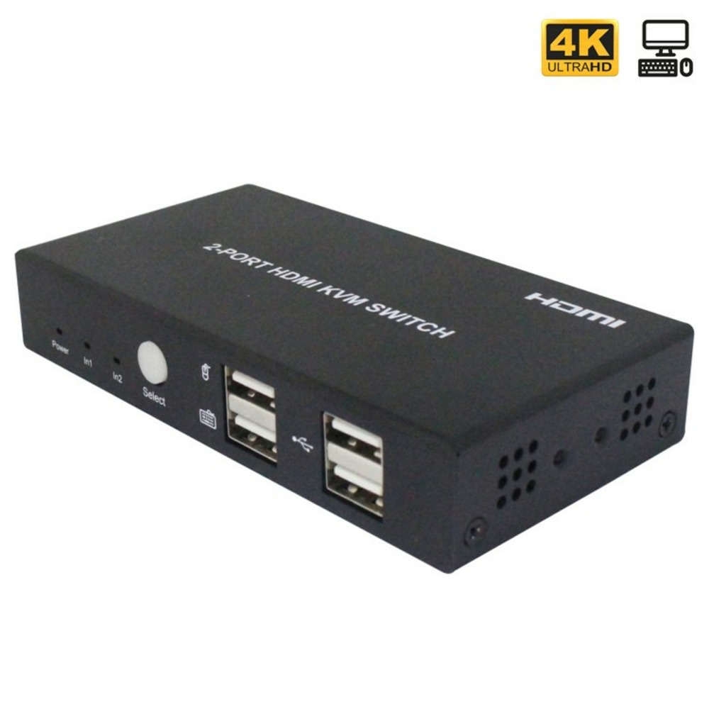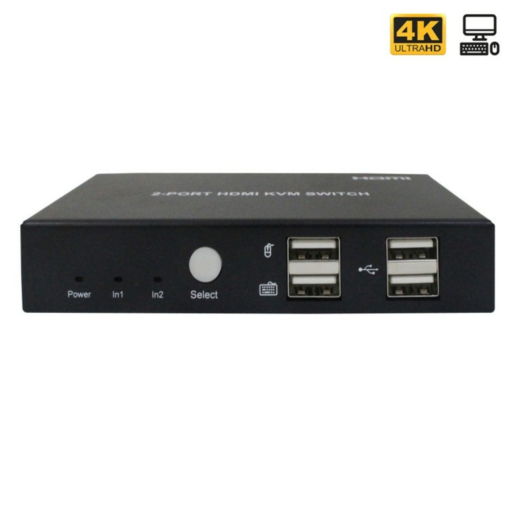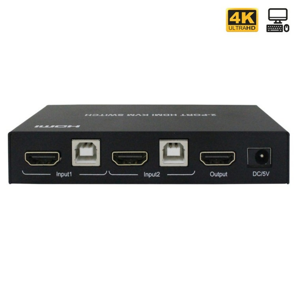 Это устройство не просто HDMI свитч, это еще и устройство для управления сразу 2 компьютерами (KVM)! С его помощью можно удаленно управлять компьютером (или другим устройством, например, видео регистратором) с помощью клавиатуры и мыши, и выводить изображение на экран монитора (или ТВ). Имеется 2 интерфейса USB 2.0 для совместного использования устройств, таких как принтер, сканер и другие USB-устройства.