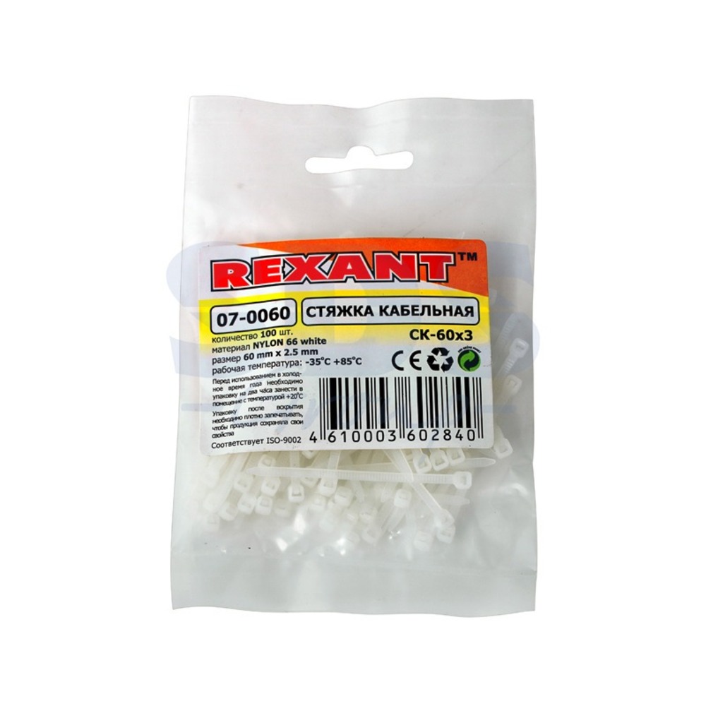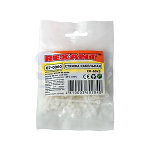 Хомут нейлоновый (кабельная стяжка) Rexant 07-0060 белый 2.5 х 60мм (100 штук)