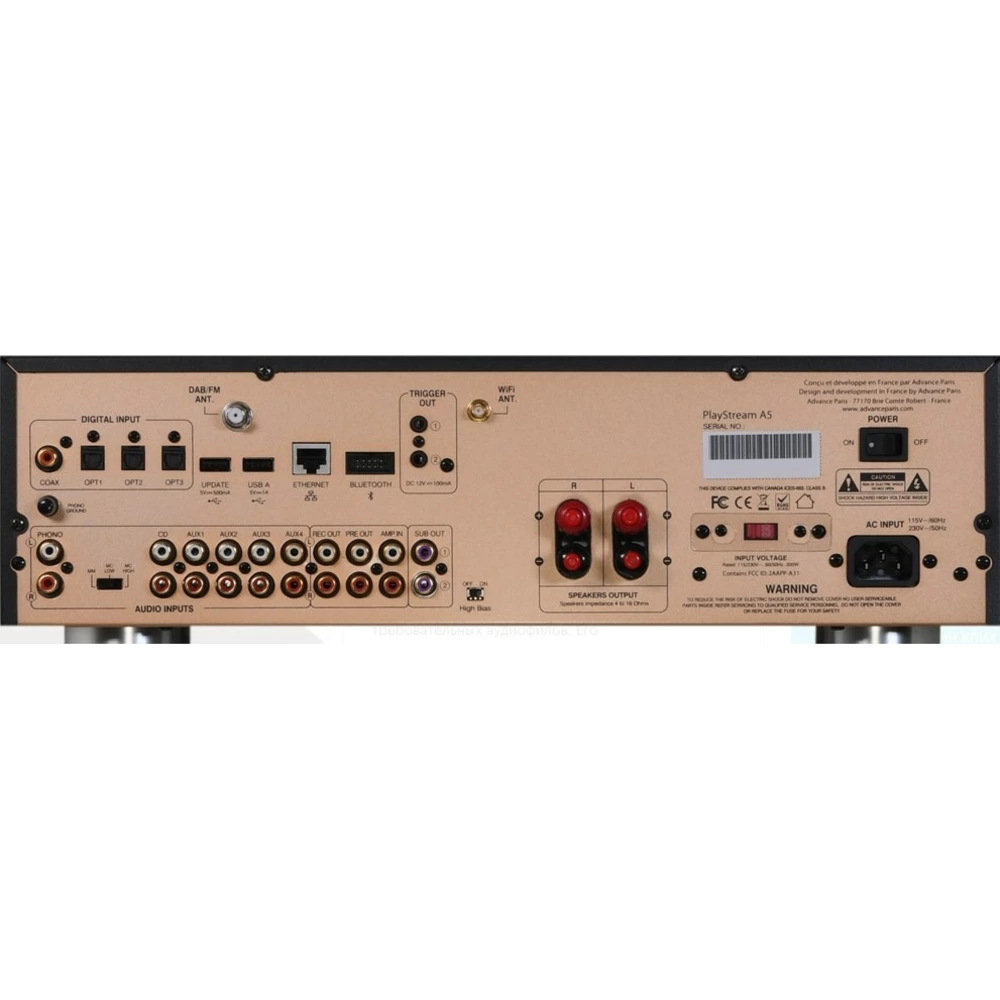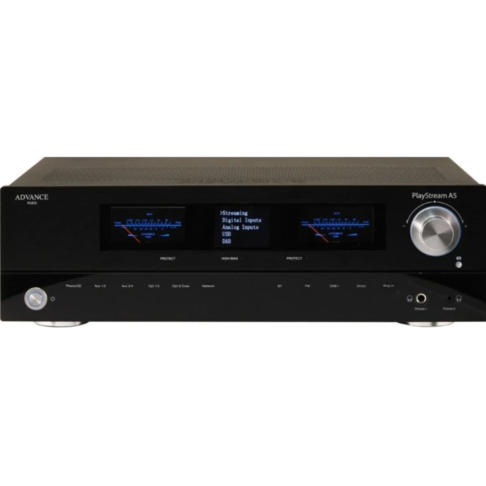 Advance Paris PlayStream A5 - это интегральный усилитель со встроенным стримером. Модель А5 предлагает мощность 2x80 Вт / 8 Ом в классе AB и была разработана с целью удовлетворения требовательных аудиофилов. Его воспроизведение звука бескомпромиссное, совместимо со всеми новыми источниками музыкального контента с высоким разрешением.