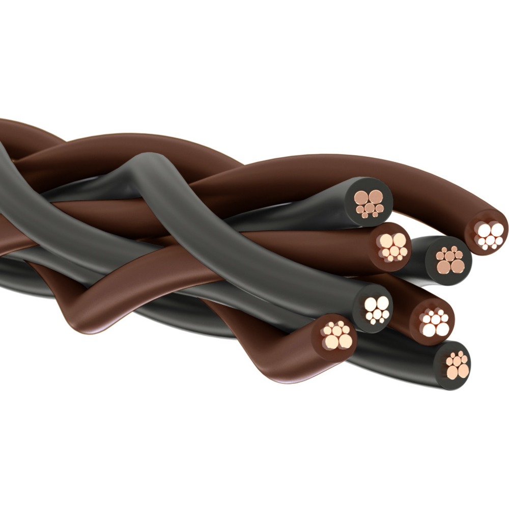 Плетёная конструкция состоит из 4 проводников коричневого и 4 проводников чёрного цвета, выполненных из меди высокой степени очистки и помещенных в полиэтиленовую изоляцию. Сечение проводников составляет 2х2,08 мм². За счёт такой конструкции значительно минимизируются потери (1/3 потерь по сравнению с другими кабелями равного сечения), улучшается динамика и прозрачность звучания.