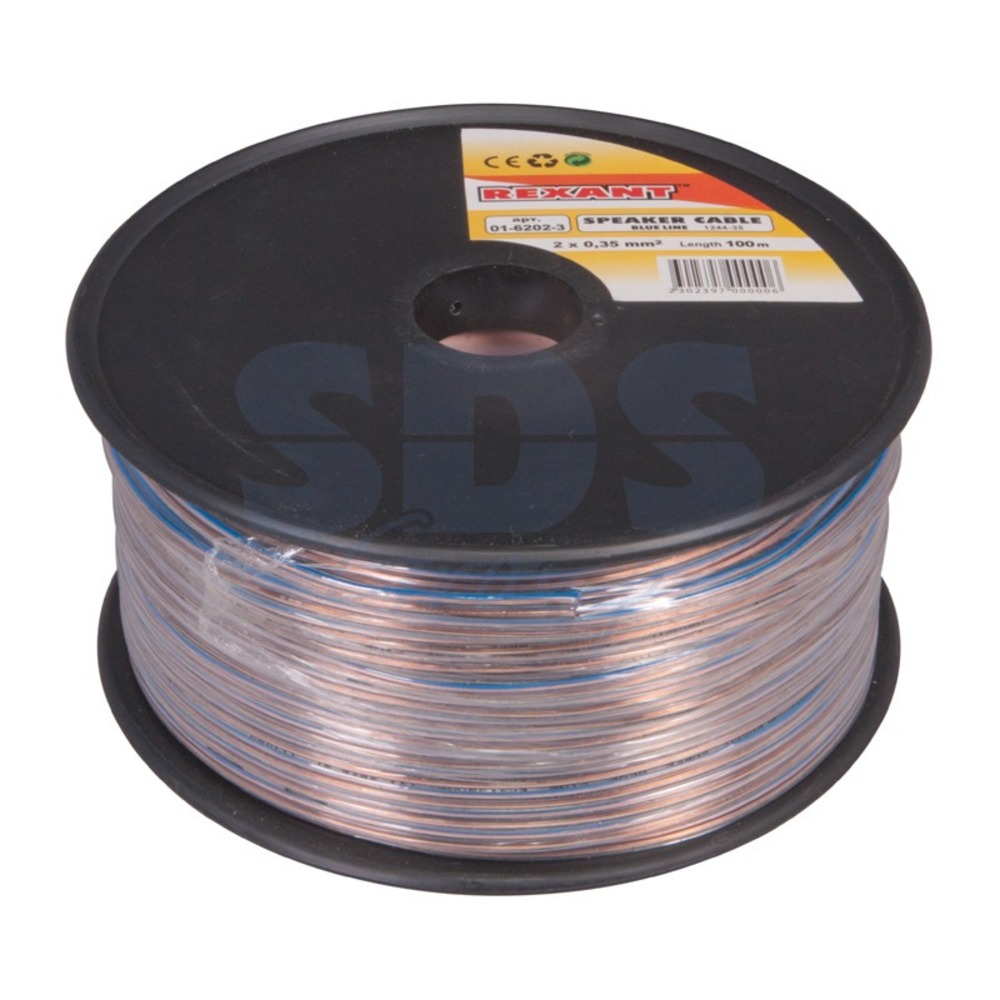 Акустический кабель 2х0,35 мм² Blue Line REXANT состоит из двух параллельных многожильных проводников в изоляции из прозрачного поливинилхлоридного плас