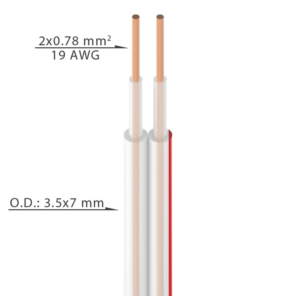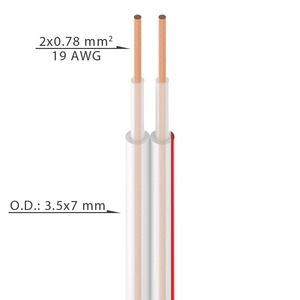 | Тип | Кабель для громкоговорителей на катушке, 2x0.78мм2, D:3,5x7мм, Цвет: Прозрачный |