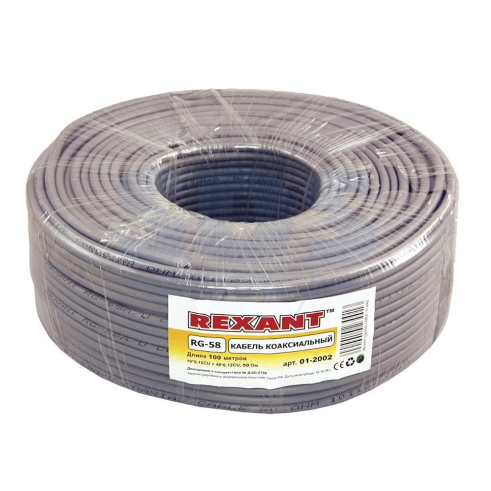 | Тип | Кабель антенный RG-58A/U (50 Ом) серый, 100 метров |