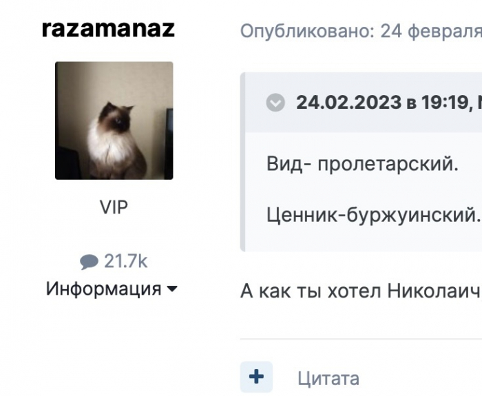 Кошак драный, хватит уже какой раз лапать своими грязными хваталками имя Сергея. Про то, что ты пустая и трепливая бестолковка и он прекрасно знал. Сколько раз мы с ним это отмечали. Не трогали тебя лишь потому, что жалели, вроде как свой, ну бывает помрачение или недостаток ума, ну что тут поделаешь. Да и я тебя, балбеса, до последнего жалел, очень корректно и терпеливо поправлял твои глупости, не все конечно, но самый вопиющий тупняк. Можешь у Николая спросить, сколько раз я офигевал от очередного твоего бреда, на его шутливые предложения поддать тебе, так и отвечал - ну жалко же его.