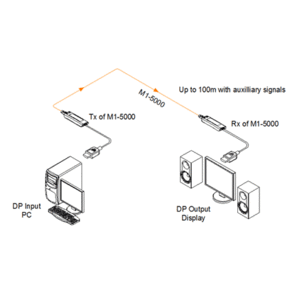 M1-5000 – оптоволоконный гибридный кабель для передачи сигналов интерфейса DisplayPort. Кабель содержит четыре оптических и пять экранированных медных жил, заключенных в общую негорючую ПВХ-оболочку. На концах кабеля установлены миниатюрные модули, выполняющие преобразование сигналов интерфейса DisplayPort для передачи и приема по оптоволоконной линии. Данные каналов интерфейса передаются по четырем многомодовым оптоволоконным жилам, обеспечивающим пропускную способность до 2,7 Гбит/с на канал. Таким образом, обеспечивается передача сигналов компьютерной графики с разрешением до 2560x1600 с частотой обновления 60 Гц и 36-разрядной глубиной кодирования цвета. Сигналы сервисного канала передаются по медным проводникам, обеспечивая поддержку VESA-спецификаций для EDID и MCCS-стандартов. Кабели M1-5000 с поддержкой передачи данных сервисного канала выпускаются в ассортименте длин от 10 до 100 м, другие варианты доступны под заказ.