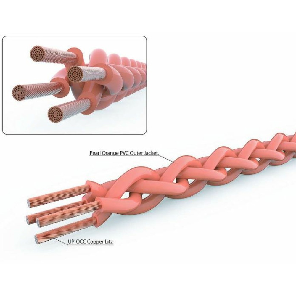 TWcu25 относится к кабелям с проводником из литцендрата бескислородной меди. Сечение проводника составляет 0.18 кв.мм (24.5 AWG), который защищён эластичной изоляцией цвета “оранжевый жемчуг”. Модель оснащена компактными высококлассными разъёмами.