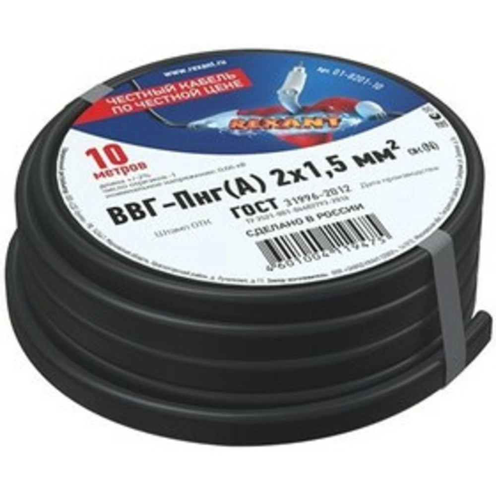 Кабель и провод электрический Rexant 01-8201-10 ВВГ-Пнг(А) 2x1,5 мм2, 10 метров, ГОСТ