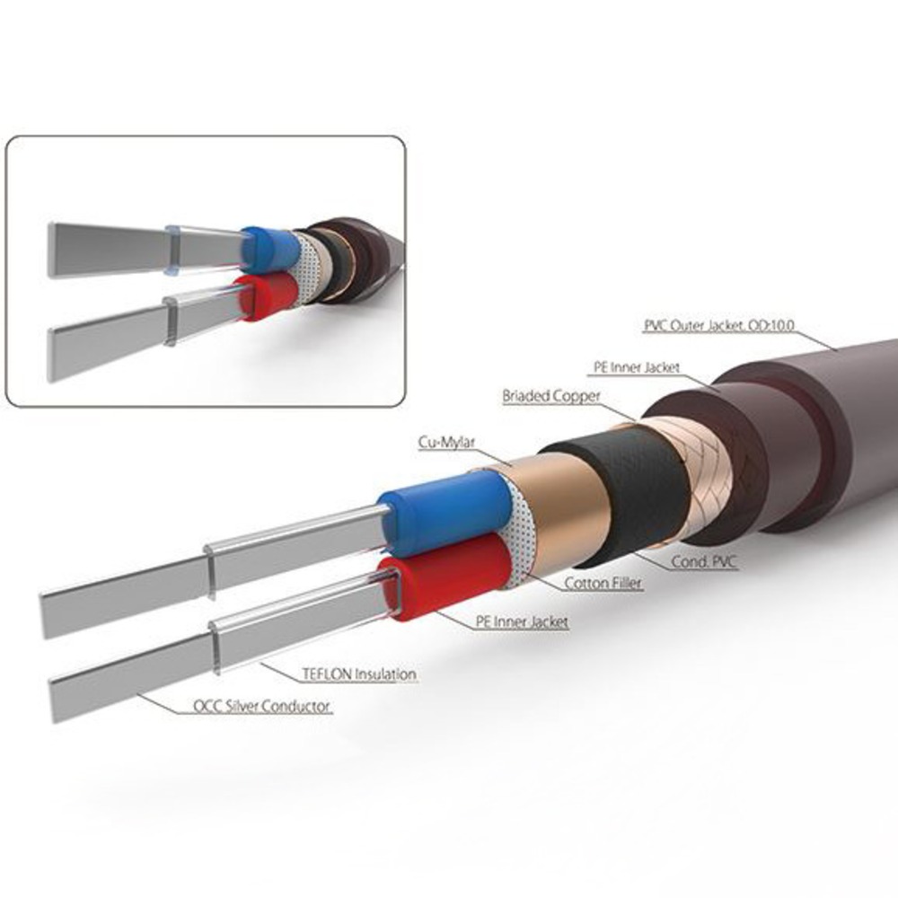 • Проводники выполнены из монокристаллического серебра высокой степени очистки в виде плоских жил.