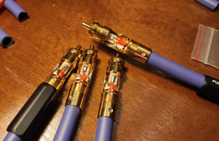 Евгений, я взял кабель, пока разъемов WBT нет, собрал на тех что были - это Tchernov Cable RCA Plug Classic AE, самые новые их - и тело и пин из бериллиевой меди.