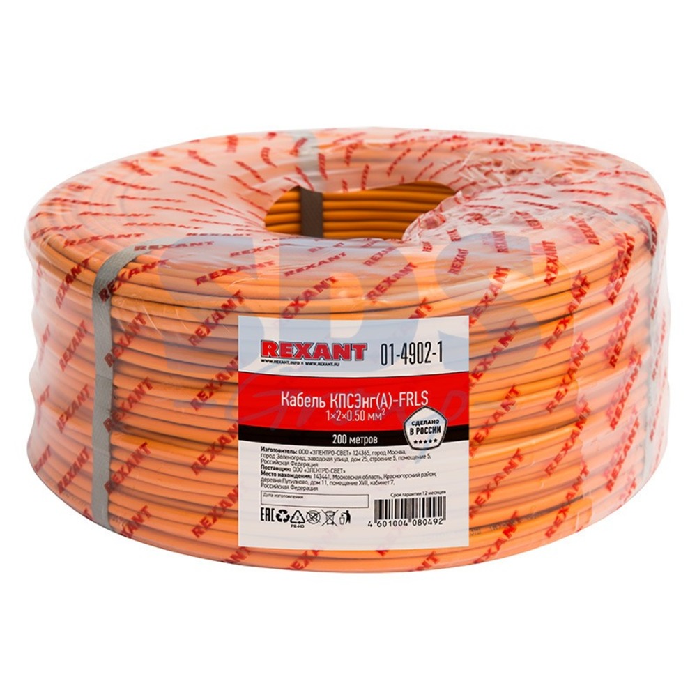 Кабель КПСЭнг(А)-FRLS 1x2x0,50 мм² REXANT симметричной парной скрутки, огнестойкий, не распространяющий горение при групповой прокладке, с пониженным дымо- и газовыделением.