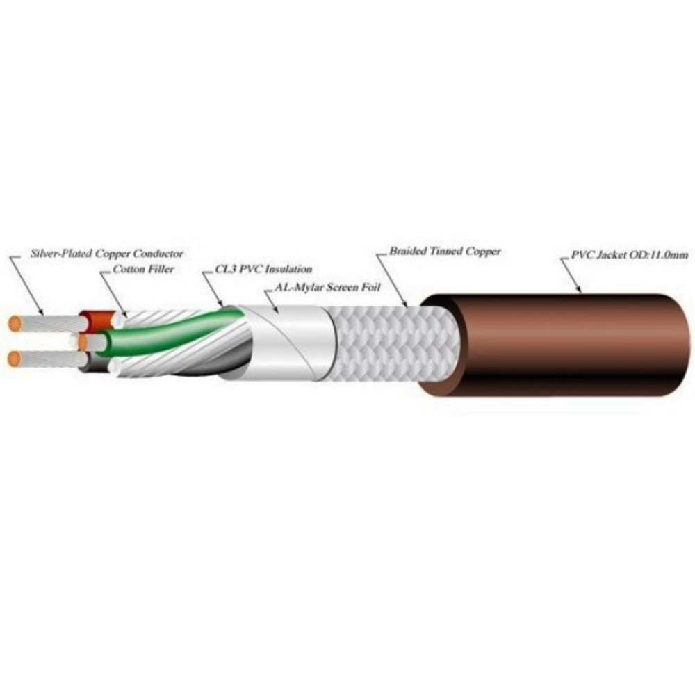 NEP-4003 — это кабель сечением 2,5 мм², медный проводник которого UP-OFC покрыт чистым серебром. Между тем, изоляция выполнена вокруг слоя ПВХ CL3 для каждого из трех проводников и плетеной хлопковой пряжи. Далее следует лист майлара и тонкий слой плетеной меди. Все защищено и изолировано толстой ПВХ-оболочкой с внешним диаметром 11 мм.