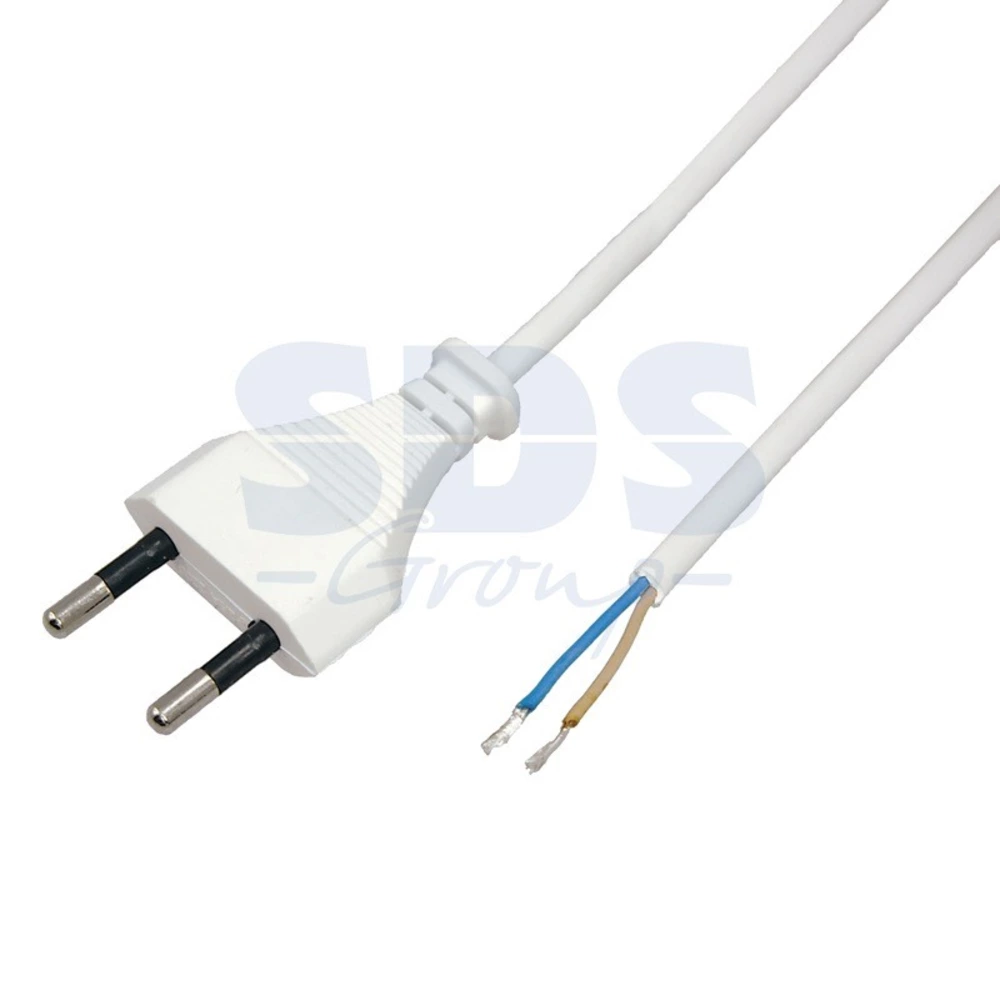 Шнур сетевой 1.5 м без розетки белый REXANT предназначен для подключения к сети переменного тока (AC) с напряжением 220 B электроприборов напрямую (скруткой или клеммным соединителем), без использования розетки. Данный шнур состоит из двухжильного провода с сечением жил 0.5 мм², с одной стороны литой неразборной плоской вилки (евро), с другой — подготовленных (зачищенных и облуженных оловом) проводников.