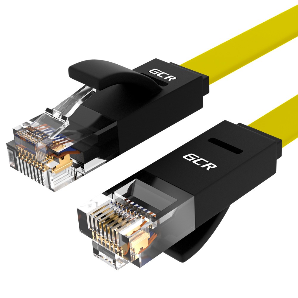 | Тип | GCR Патч-корд PROF плоский прямой 5.0m, UTP медь кат.6, желтый+черный, 30 AWG, ethernet high speed 10 Гбит/с, RJ45, T568B |