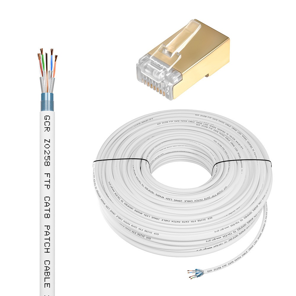Противопожарный кабель витая пара в бухте SF/FTP кат8 медь коннекторы в комплекте