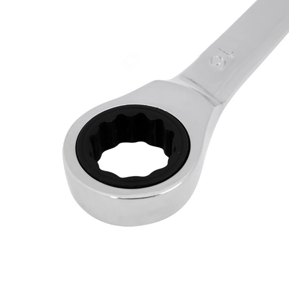 Ключ комбинированный трещоточный предназначен для монтажа и демонтажа резьбовых соединений. Покрытие хромоникелем продлевает срок службы и обеспечивает усиленную защиту от коррозии. Хром-ванадиевый сплав (Chrome Vanadium) CrV, из которого изготовлен инструмент, обладает такими свойствами, как прочность, жесткость и устойчивость к износу. Во время прокаливания он менее подвержен деформациям и потере первоначальной формы, чем другие типы инструментальной стали. Технические характеристики: Твердость материала рабочей части ключа: 44-48 HRC Размер: 16 мм