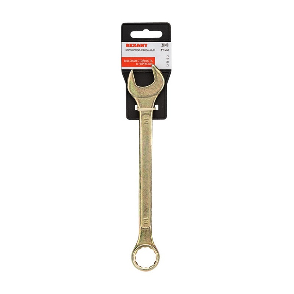 Ключ Rexant 12-5813-2 Ключ комбинированный 19 мм, желтый цинк