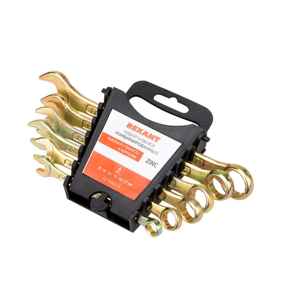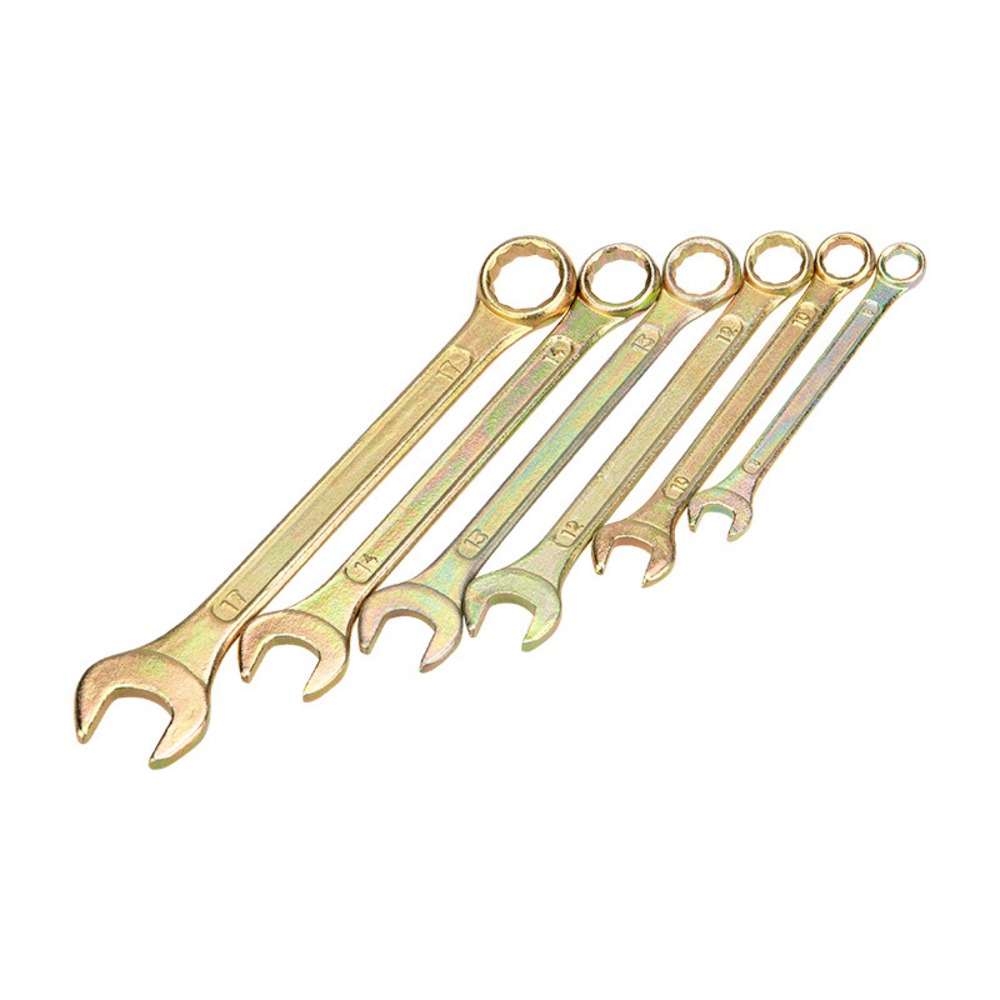 Комбинированный гаечный ключ предназначен для монтажа и демонтажа резьбовых соединений: болтов и гаек. Инструмент применяется в бытовых условиях, в слесарных мастерских и на производстве. Желтое оцинкованное покрытие препятствует появлению коррозии и продлевает срок службы инструмента. Технические характеристики: Твердость материала рабочей части ключа: 44-48 HRC Размер: 8, 10, 12, 13, 14, 17 мм