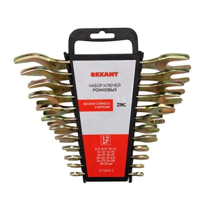 Набор рожковых гаечных ключей предназначен для монтажа и демонтажа резьбовых соединений. Желтое оцинкованное покрытие препятствует появлению коррозии и продлевает срок службы инструмента. Технические характеристики: Твердость материала рабочей части ключа: 44-48 HRC Размеры инструментов: 6×7, 8×9, 10×11, 12×13, 14×15, 16×17, 18×19, 20×22, 21×23, 24×27, 25×28, 30×32 мм