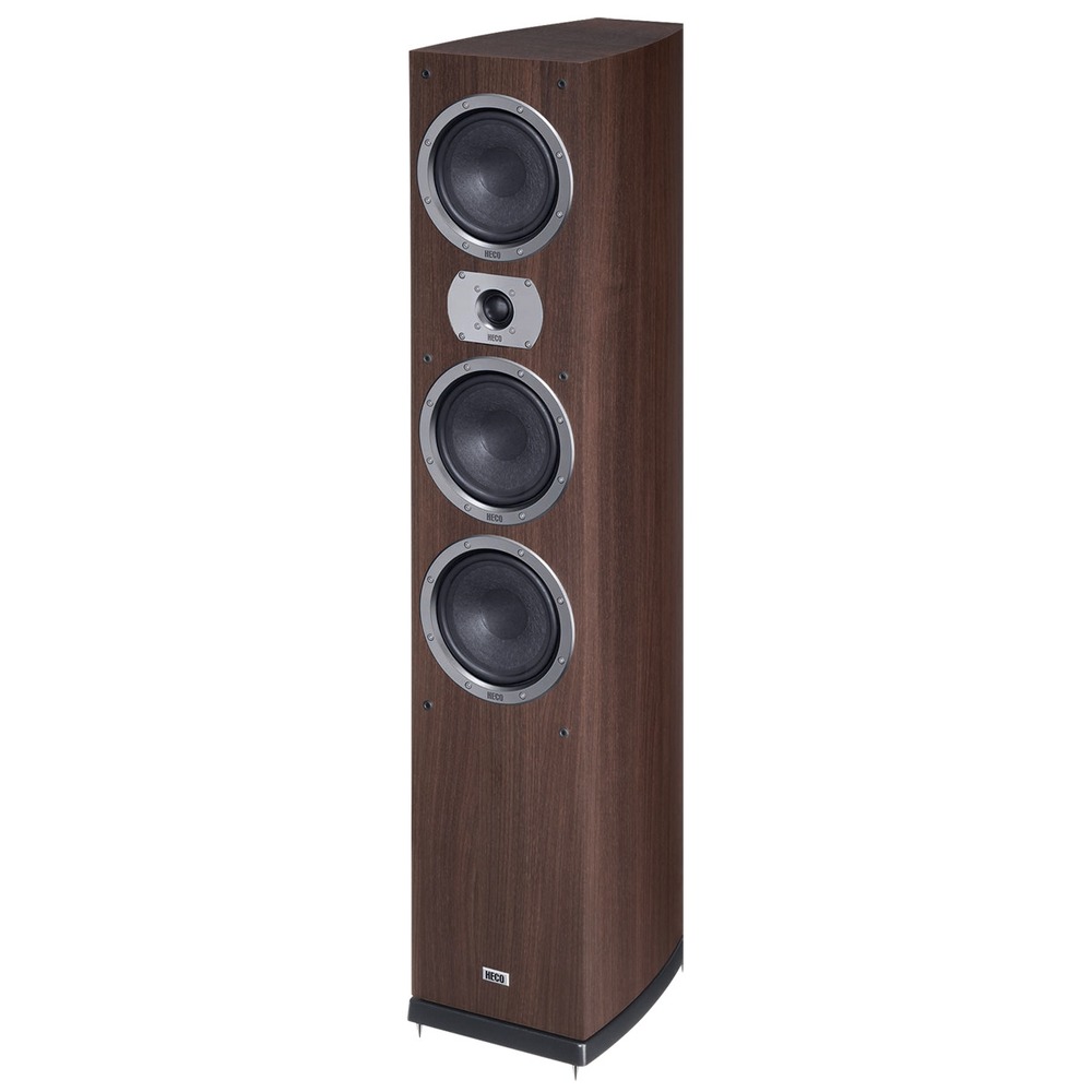 Самая мощная и басовитая модель серии, Victa Prime 702 прекрасно сбалансирована по всем характеристикам. В рамках 3-полосной конструкции эта модель оснащена двумя 170-мм НЧ-динамиками в басовой секции, соразмерным СЧ-динамиком, а также ВЧ-динамиком с 25-мм куполом. Диффузоры НЧ-динамиков и СЧ-динамиков выполнены из отлично зарекомендовавшего себя во многих сериях Heco материала: длинноволокнистой крафт-бумаги. Наряду с облегченным шелковым куполом, исполнение ВЧ-динамика включает охлаждение ферримагнитной жидкостью для повышенной допустимой мощности, а также широкий металлический внешний фланец, выступающий в роли рупорной акустической нагрузки. Такой конструктивный прием улучшает диаграмму направленности на высоких частотах, а также согласование с нижележащим СЧ-регистром. Элегантный корпус собран из панелей MDF с внутренними распорками для максимальной жесткости и борьбы с нежелательными вибрациями. Изогнутые непараллельные (сходящиеся к тылу) боковины корпуса не только подчеркивают незаурядность дизайна, а также очень выигрышны с акустической точки зрения, устраняя опасность возникновения стоячих волн внутри корпуса.