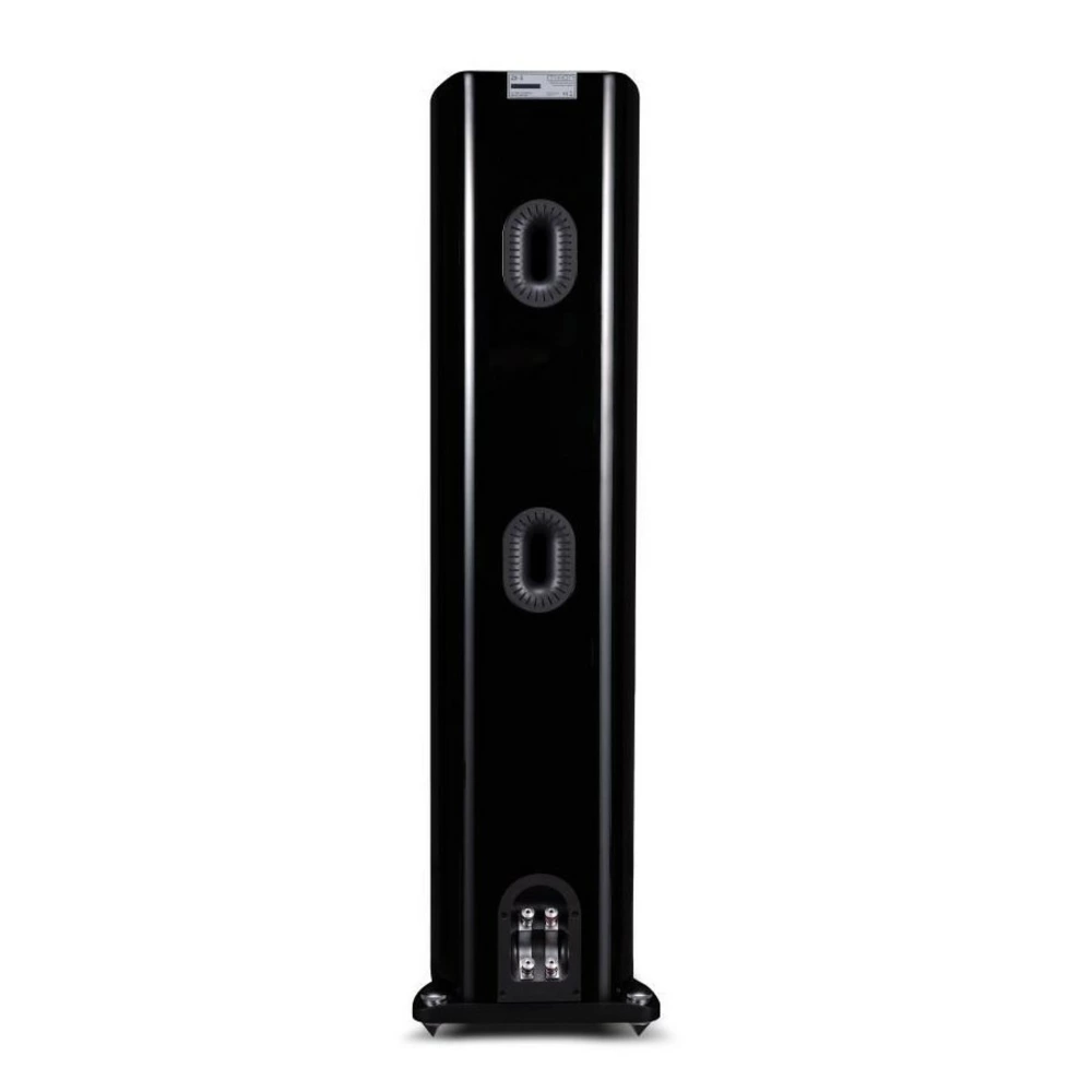 В, расположенные сзади, два порта фазоинвертора встроены волнообразные зазубрины. Воздушный поток под высоким давлением направляется от выхода порта, в то время как асимметричная конструкция рассеивает искажения, обычно присутствующее в круглых портах фазоинвертора.