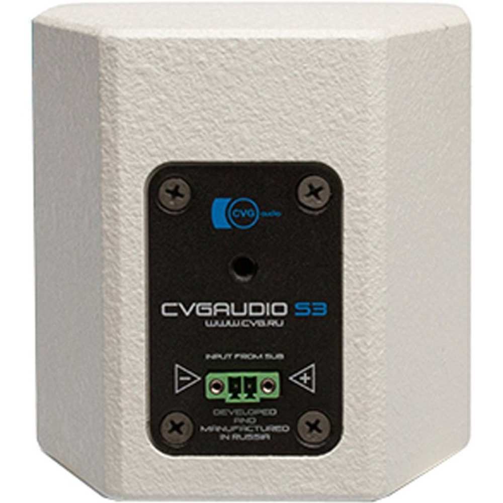 Приходящие от усилителя акустические кабели подключаются с помощью съемного разъема типа EuroBlock. Разъем имеет два винта с помощью которых он надежно фиксируется к корпусу динамика. Предусмотрены вход и выход для параллельного подключения следующей акустической системы. CVGAUDIO SAT-S3W отлично стыкуются с сабвуферами CVGAUDIO SUBONE MODEL – A/B/C/D и SUBSTICK. Четыре сателлита SAT-S3W и один сабвуфер способны создать по настоящему качественный, комфортный звук в помещениях площадью 60-80m2. Рекомендуем использовать подобные комплекты для организации высококачественных коммерческих аудио систем в кафе, ресторанах, модных магазинах и бутиках, spa-салонах, парикмахерских, офисах продаж, шоурумах и других помещениях, где качество воспроизводимого музыкального контента является элементом создания по настоящему комфортной, благозвучной среды для Ваших посетителей. Для более гибкой и тонкой настройки рекомендуем использовать сателлиты и сабвуфер на отдельных каналах усиления.