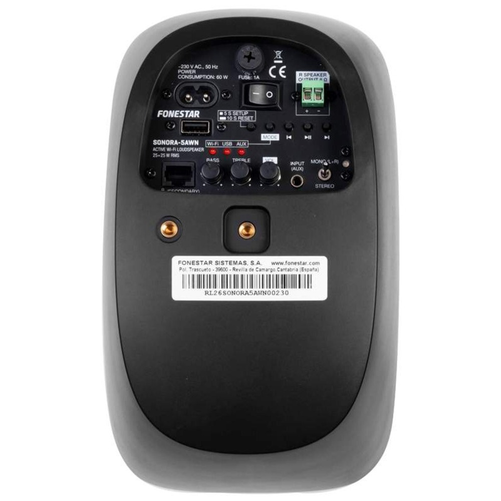 Двухполосная активная акустическая система с высокоэффективным и надежным усилителем класса D среднеквадратичной мощностью 2x25 Вт и возможностью подключения пассивной акустической системы на 8 Ом для получения стереозвука. Включает подключение по Wi-Fi / локальной сети и USB / MP3-плеер. Потоковым аудиоплеером управляет приложение на смартфоне или планшете. Оно позволяет управлять несколькими динамиками и воспроизводить различные музыкальные программы. Воспроизводит музыку со смартфона, планшета, Windows или Mac через Wi-Fi (2,4 ГГц). Он позволяет подключаться к музыкальным онлайн-сервисам и интернет-радио, отправлять одну и ту же музыкальную программу на несколько колонок одновременно (мультирум, колонки необходимо подключать через Wi-Fi к основной колонке), среди прочих опций вы можете регулировать громкость каждой колонки, настраивать ее название. Вы также можете воспроизводить музыку с USB-накопителя или вспомогательного входа. Превосходная отделка и элегантный дизайн позволяют ей идеально вписаться в любое пространство. Звуковая панель оснащена полипропиленовым басом 5,25 дюйма и твитером 1 дюйм. Обеспечивает высокое качество звука без искажений. Кроме того, она оснащена регуляторами коррекции и громкости, переключателем моно /стерео и функцией автоматического ожидания. Включает в себя все необходимые аксессуары для быстрой и легкой установки: регулируемый монтажный кронштейн, винты из нержавеющей стали и стальной страховочный трос. Подходит для озвучивания общественных мест, таких как рестораны, кафе, супермаркеты, торговые центры и т.д.