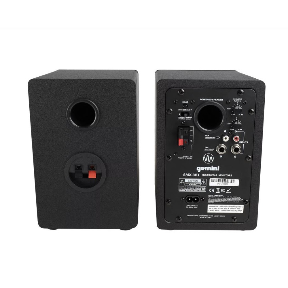 Gemini SMX-03BT акустическая система пара (активный+пассивный), 50 Вт, 80-22000 Гц, 3,5"+1", входы: 2x1/4"линейный , 2xRCA линейный, 3,5 мм AUX, выходы: 3,5 мм наушники, Bluetooth