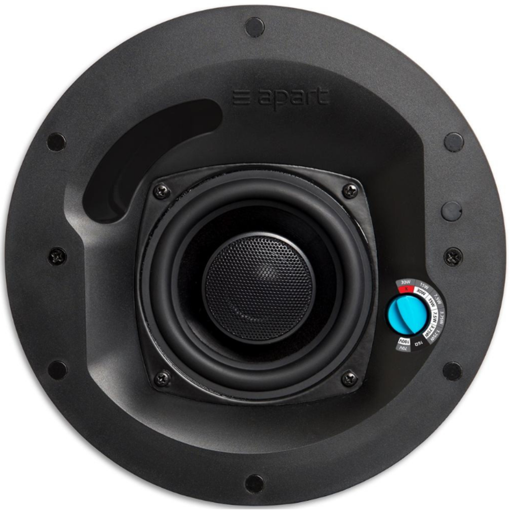 Apart CM30DTD двухполосный безрамочный корпусной потолочный громкоговоритель, оборудован НЧ динамиком 6,5" и ВЧ драйвером 1". Возможны два варианта подключения: низкоомное - 80 Вт/16 Ом или на трансляционную линию 100В, с выбором мощности 30-15-7,5-3,75 Вт.