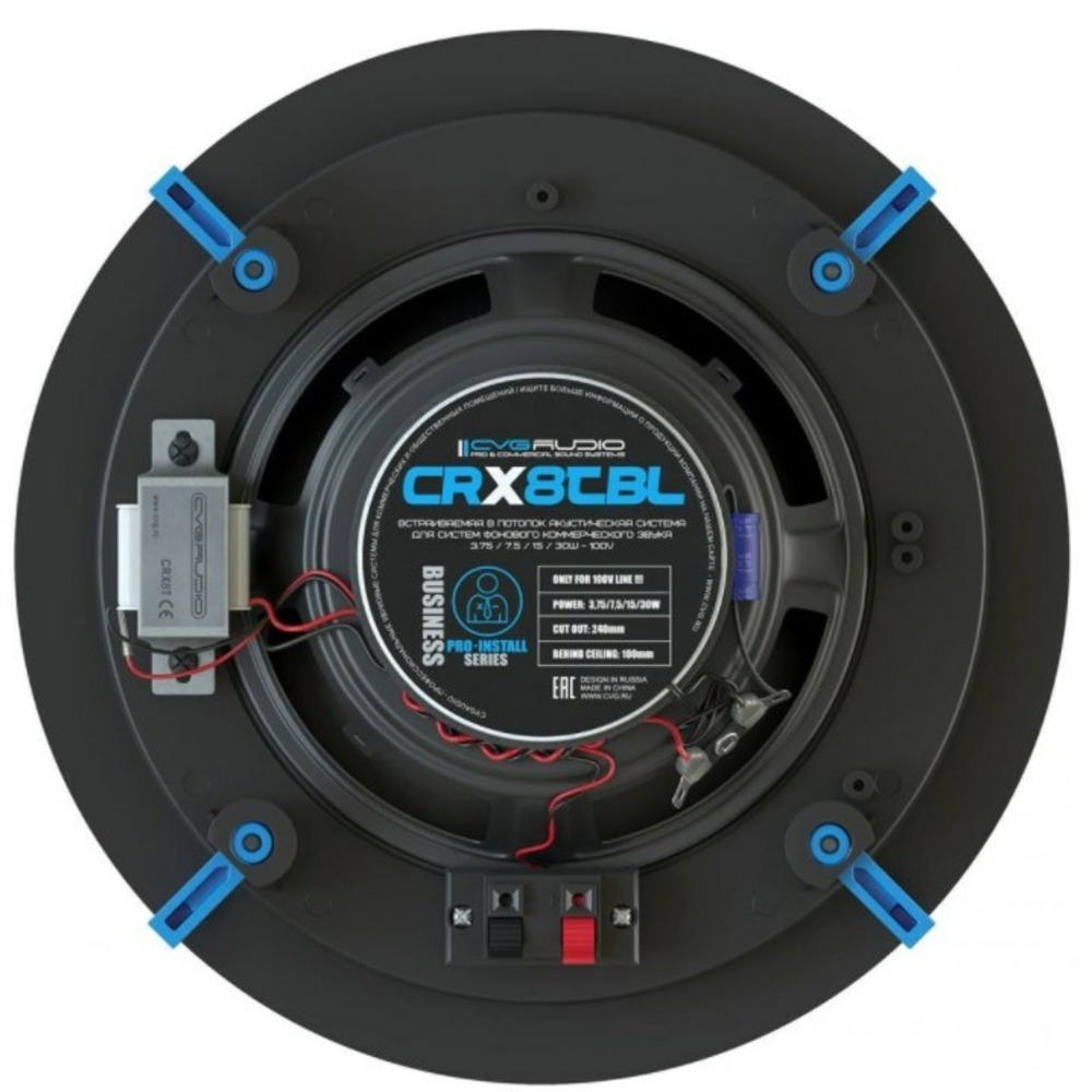 CVGAUDIO CRX8TBL благодаря использованию крупного, мощного магнита имеет достаточно большой вес – 2,5kg. Динамик без проблем может быть установлен в гипсокартон, но при установке в потолок типа Armstrong имеет смысл использовать опциональные закладные элементы из пластика. Благодаря неброскому, аккуратному дизайну CVGAUDIO CRX8TBL возможно органично вписать в любой интерьер, не нарушив общего стиля помещения, а продуманная конструкция, профессионально подобранные комплектующие и материалы обеспечат безотказную и качественную работу акустических систем CVGaudio CRX8T в течении всего срока службы.