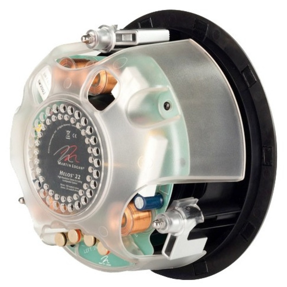MartinLogan Helos 22 является встраиваемой в потолок акустической системой. Она обеспечивает стереозвук за счет применения двух высокочастотных динамиков с 19-ти миллиметровым тканевым куполом. За средние и низкие частоты отвечает динамик с алюминиевым диффузором диаметром 165 миллиметров. Двойной твитер имеет поворотную конструкцию, что позволяет изменять зону прослушивания.